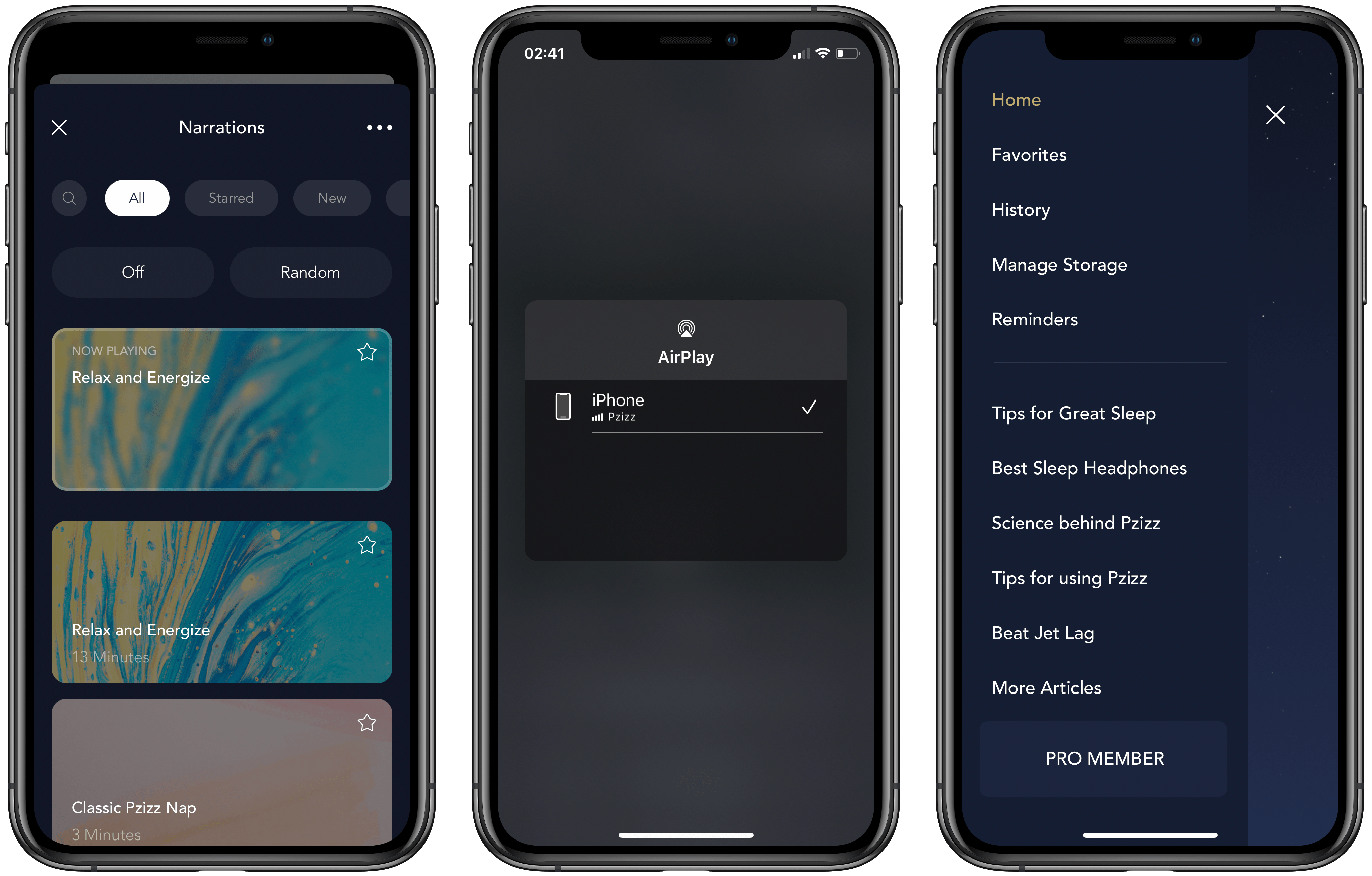 Dlaczego tak zaryzykowałem tym stwierdzeniem? Cóż, Pzizz jest dla mnie po prostu idealne. Nie dziwie się, że jest także bardzo dobrze oceniane przez innych internautów. Jest świetne w swojej prostocie, gdyż do wyboru mamy tak naprawdę trzy tryby. Sen, drzemka oraz skupienie. Każdy z nich oferuje inne dźwięki oraz głosy, które słyszymy w tle. Zaznaczam tu, że jest to wszystko po angielsku, jednak można je wyłączyć i cieszyć się tylko relaksującymi efektami. Ja, chociaż znam ten język, również z tego rezygnuję – po prostu mnie to rozprasza. Jeżeli już przy tym jesteśmy – uważam, że tryb skupienia niweluje to najlepiej z wszystkich apek. Możemy zaznaczyć intensywny tryb, który naprawdę daje radę i działa. Przetestowane podczas nauki!