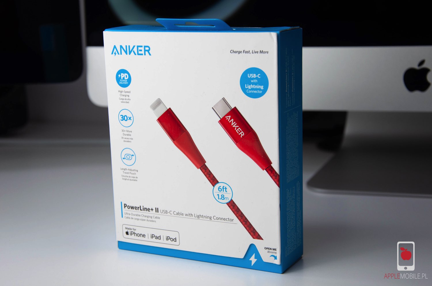 Przewód jest kompatybilny z szybkim ładowaniem Power Delivery i działa ze wszystkimi urządzeniami Apple z gniazdem Lightning.