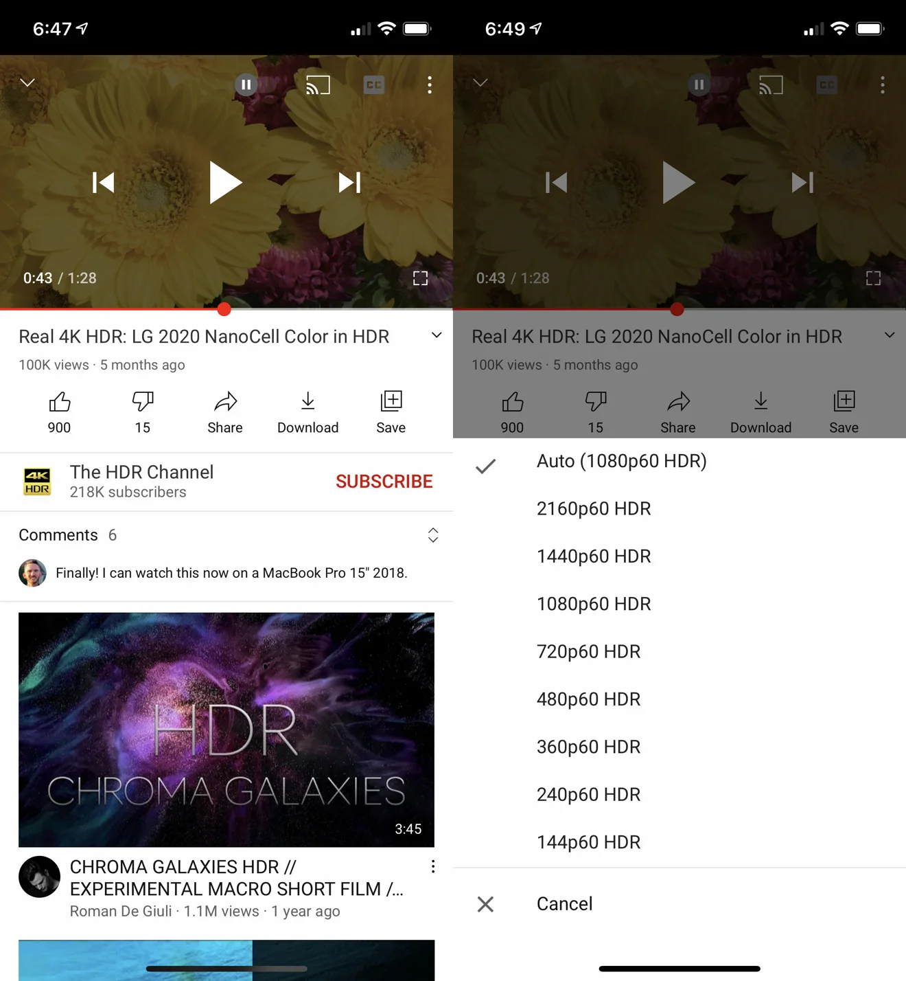 Aplikacja YouTube na iOS wspiera HDR w iPhone’ach z serii 12