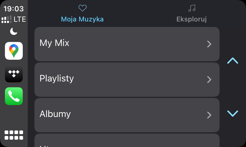 W kategorii muzyka, z CarPlay współpracują aplikacje od całej wielkiej czwórki. Do wyboru mamy więc Apple Music, Spotify, Tidal i Deezer. Póki co zabrakło stosunkowo nowego serwisu Empik Music.