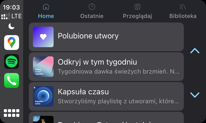 W zależności od posiadanego konta muzyki można słuchać w streamingu lub off line. Wersja CarPlay zapewnia dostęp do większości funkcji. Można przeglądać playlist, jest dostęp do ulubionych. Podczas jazdy nie trzeba sięgać po telefon. Aplikacja Spotify na CarPlay także współpracuje z Siri, a pełna lista komend dostępna jest tutaj. Spotify to nie tylko muzyka, ale i podcasty. Aplikacja działa szybko i stabilnie, nie zdarzyło mi się, żeby zawiesiła system multimedialny lub telefon.