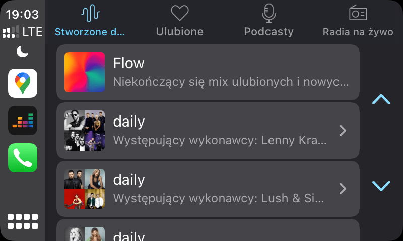 Najbardziej humorzasta spośród aplikacji do odtwarzania muzyki na CarPlay. Zdecydowanie za często zachowuje się nieprzewidywanie np. aplikacja znika z ekranu, ale muzyka gra dalej i nie można jej wyłączyć albo pojawia się komunikat o niedostępności sieci, mimo tego, że zasięg jest, a inne aplikacje ściągają dane.
