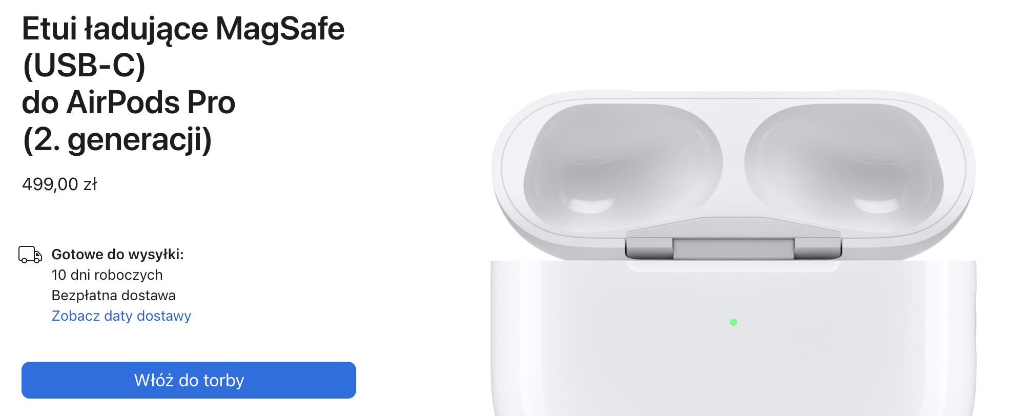 Osobne etui USB-C do AirPods Pro 2 kosztuje 499 zł na polskiej stronie sklepu Apple.