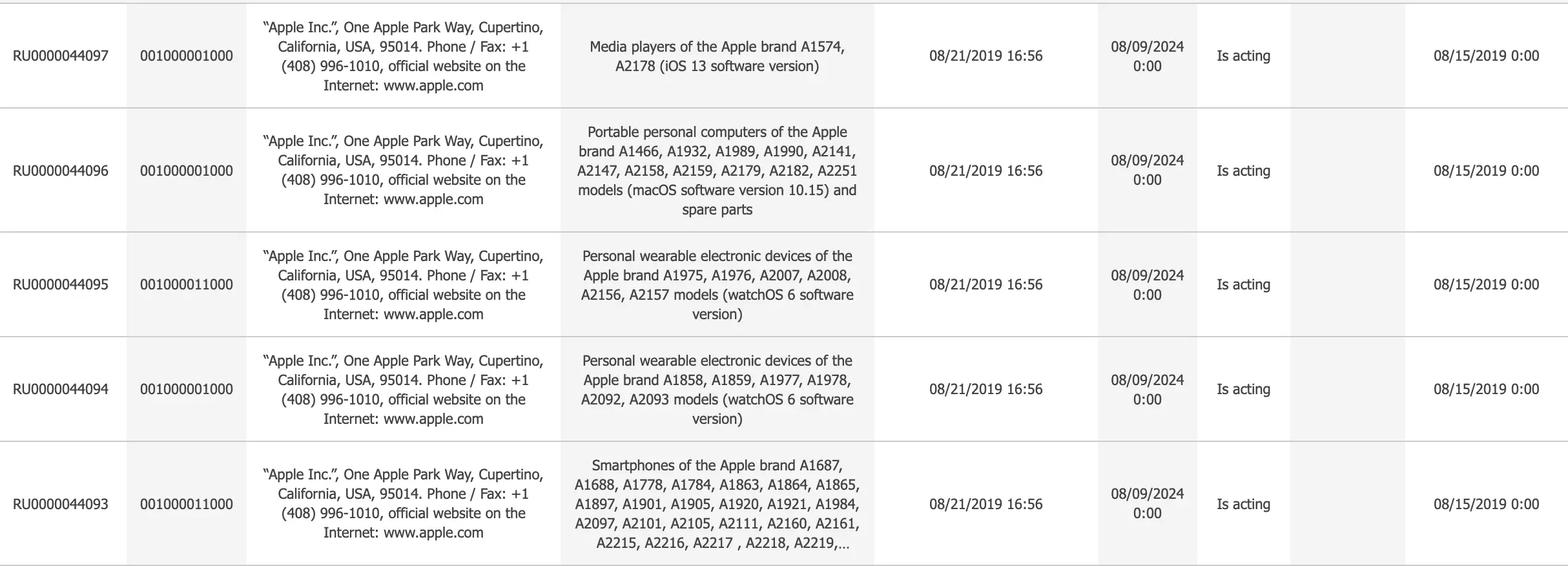Firma Apple zarejestrowała w specjalnej bazie Euroazjatyckiej Unii Gospodarczej trzynaście nowych iPhone’ów, cztery Apple Watche oraz sześć komputerów Mac. Oto ich symbole: