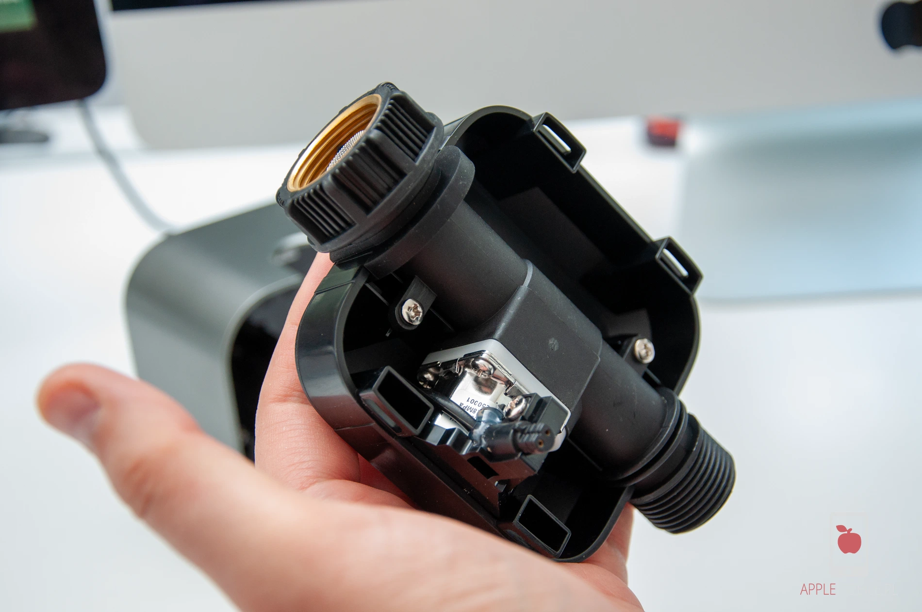 To ogromny postęp względem starszych wersji, w których plastikowe złącza bywały problematyczne. Szczególnie, gdy podłączaliśmy do starego Eve Aqua giętki wąż i nie zwracając uwagi ciągnęliśmy go po ogrodzie, a delikatny plastikowy zawór pękał od naprężeń.