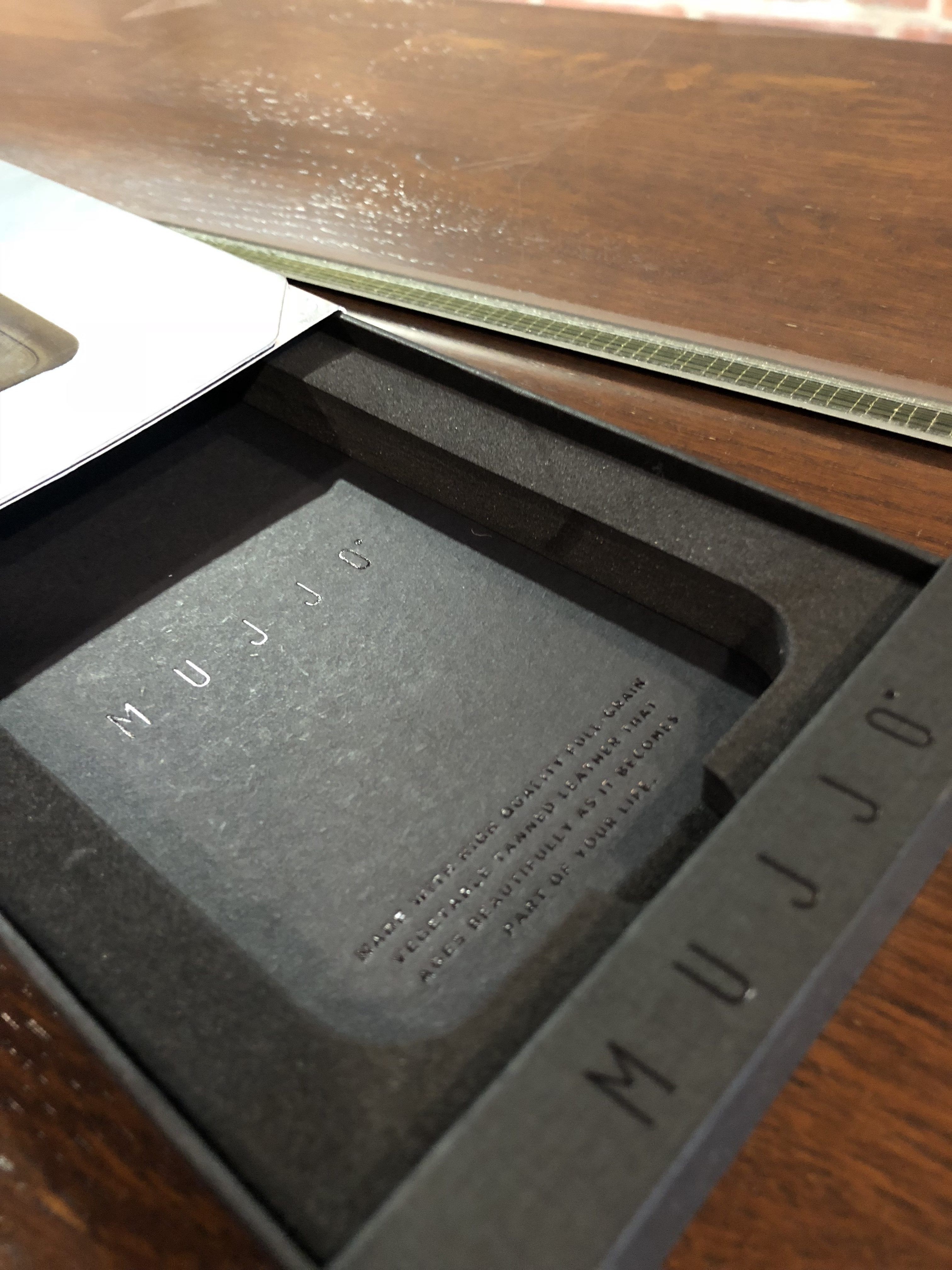 Uwielbiam tak pakowane produkty, gdzie praktycznie do niczego nie można się przyczepić. Nie dość, że przedmiot zakupu to wysokiej jakości etui, to jeszcze zapakowano je w schludnie prezentujący się kartonik wyposażony w sztywną szufladkę i wytłoczenia z logo marki. Ja pokusiem się o etui wzbogacone o kieszeń na banknoty lub karty ale w ofercie Mujjo znajduje się jeszcze wersja pozbawiona tego mniej lub bardziej praktycznego dodatku.