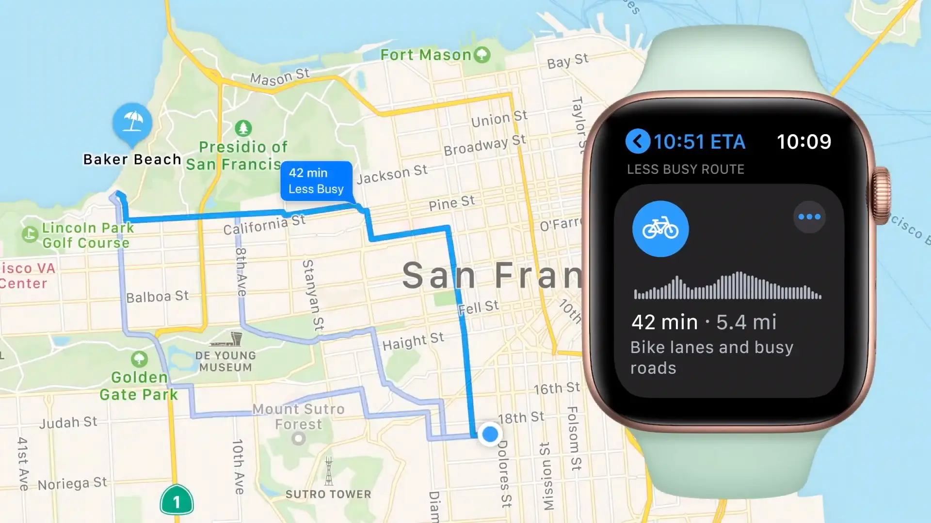 - Aplikacja Mapy dla systemu watchOS wskazywać może teraz trasy rowerowe.