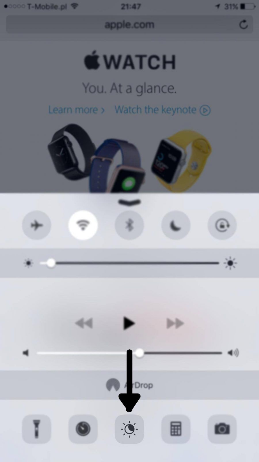Po uaktualnieniu do iOS 9.3, zobaczysz nową ikonkę w dolnym rzędzie Control Center. Ikona przypomina swym wyglądem lekko przyćmione słońce.