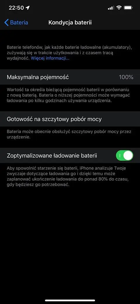Firma Apple w systemie iOS 13 dodała funkcję optymalizacji ładowania baterii, która ma zwiększyć żywotność ogniw w iPhone’ach. Aby aktywować funkcję „Zoptymalizowane ładowanie baterii” trzeba przejść do Ustawienia/Bateria/Kondycja baterii. Poniżej zrzuty ekranu pokazujące jak wygląda ta funkcja w systemie iOS 13 oraz w jaki sposób opisała ją firma Apple.