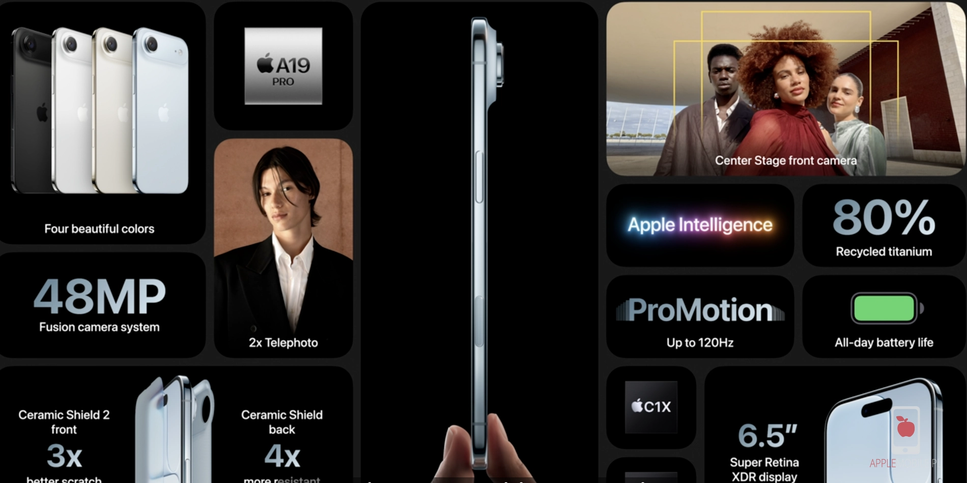 •Układ C1X: Nowy baseband 5G od Apple, który jest o 30% bardziej energooszczędny niż jego odpowiednik w iPhonie 16 Pro.