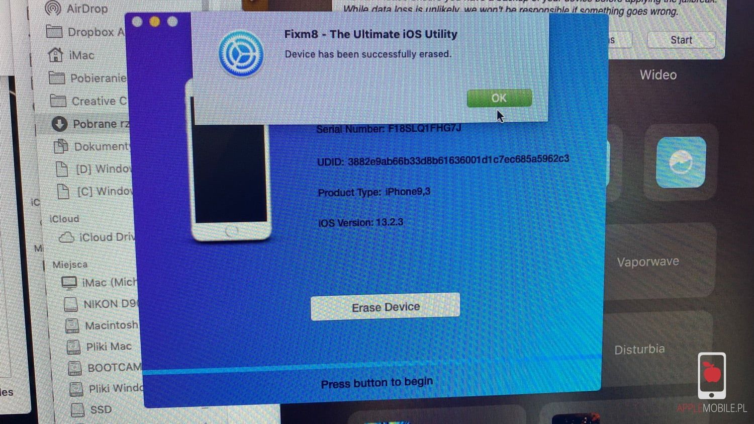 Wielu geeków chcąc zachować aktualną wersję iOS choćby po to, aby móc wykonać Jailbreak, poszukuje odpowiedzi jak wymazać zawartość pamięci iPhone, bez dostępu do telefonu (na przykład zablokowany zbyt dużą ilością źle wpisanego hasła), bez instalacji systemu przez iTunes, kótry zawsze wgrywa najnowszą dostępną wersję iOS. Dzięki aplikacji Fixm8 The Ultimate iOS Utylity 1.0 można wymazać zawartość urządzenia, bez podwyższania wersji iOS podczas instalacji. Jak wymazać zawartość iPhone bez instalacji oprogramowania przez iTunes/Finder?