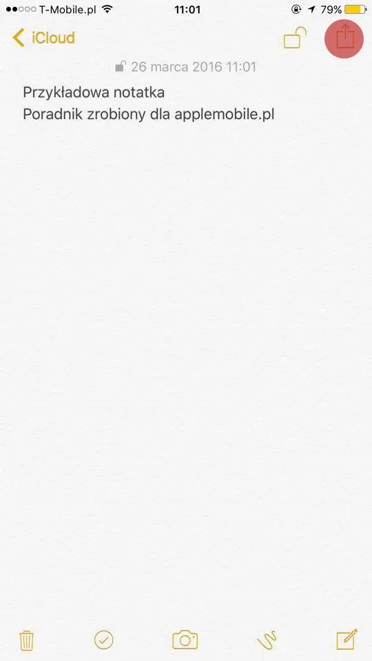 Otwórz aplikację „Notatki” i wybierz notatkę, którą chcesz zablokować. Dotknij przycisk „udostępnij” w prawym górnym rogu, następnie należy wybrać „Blokuj notatkę”.