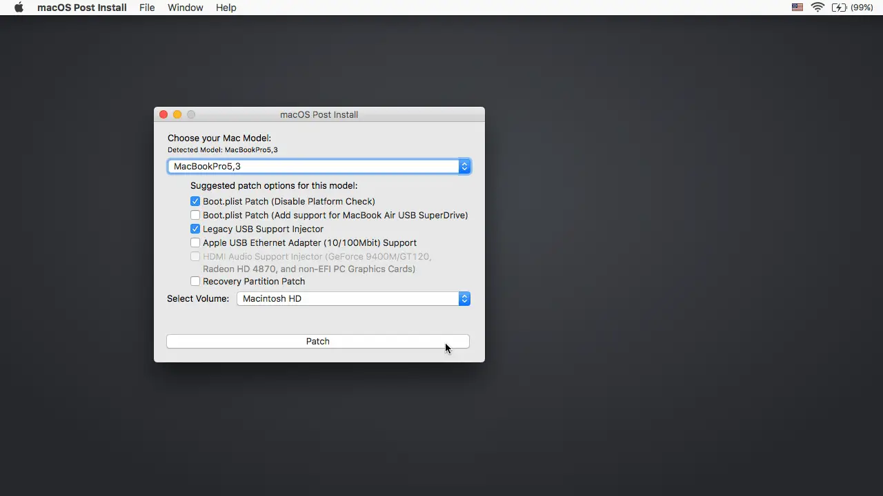 - W aplikacji, wybierz model Maca którego używasz. Optymalne łatki zostaną wybrane dla Ciebie w oparciu o wybrany model.