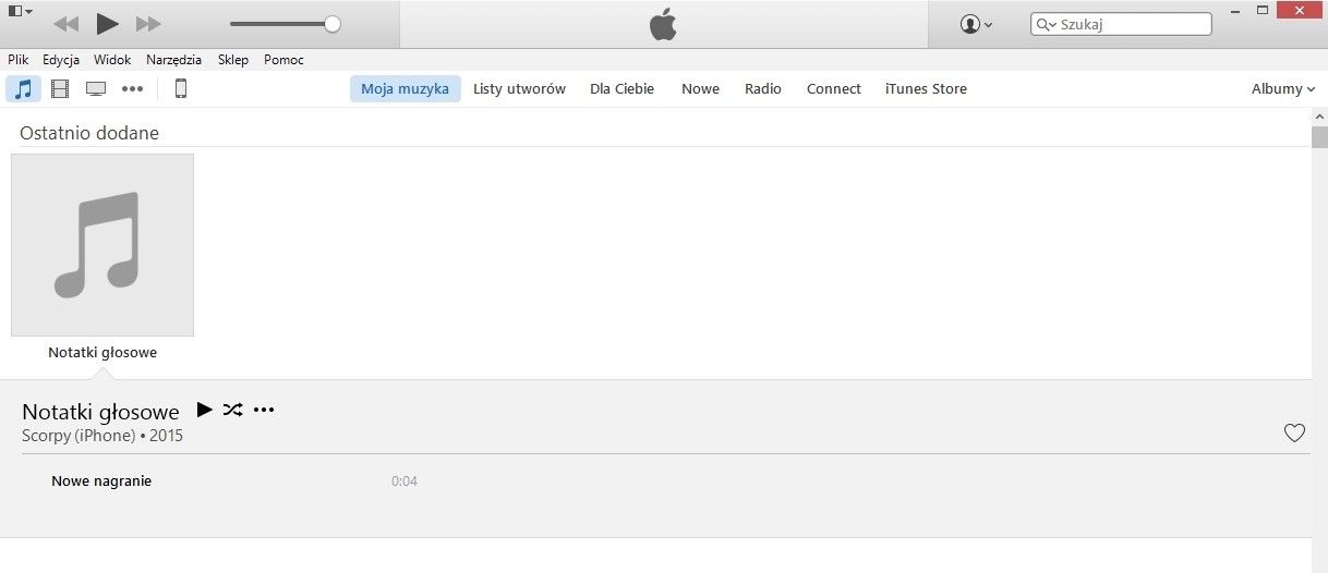 Po synchronizowaniu urządzenia będziemy mieli dostępne nagrania jako utwory na liście z muzyką.