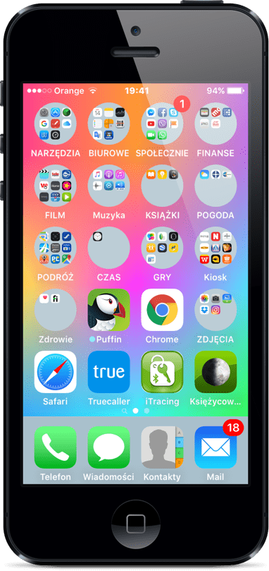 Tak prezentują się okrągłe foldery na iPhonie 5 w wersji 9.3.1.