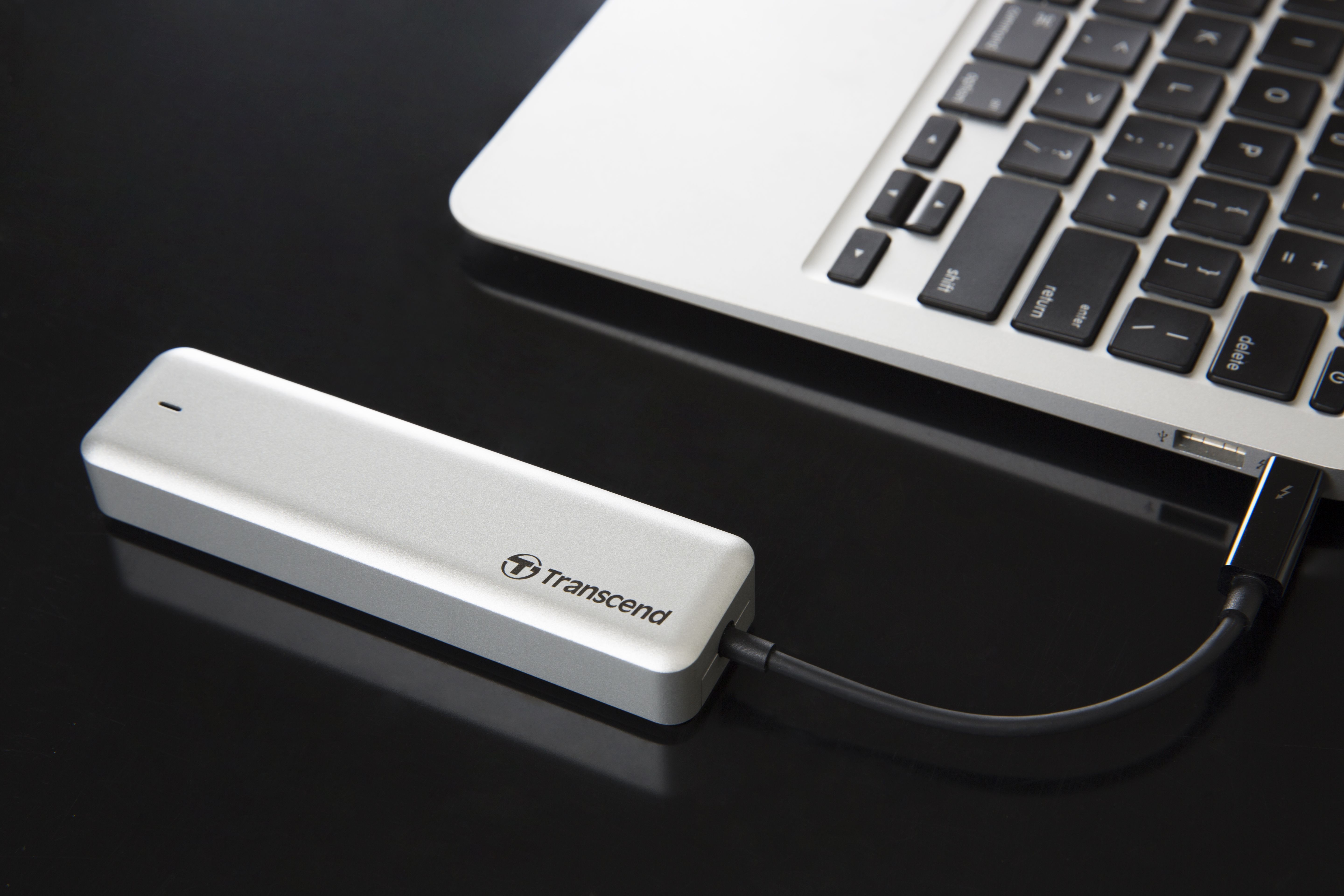 Nośnik pracuje przy wykorzystaniu pamięci 3D NAND TLC, oferujących prędkość zapisu i odczytu do 950 MB/s. Znajdujący się wewnątrz obudowy dysk SSD (TRANSCEND JetDrive 820) można w łatwy sposób wymontować i zainstalować w kompatybilnym Macu przy pomocy załączonych w zestawie śrubokrętów.