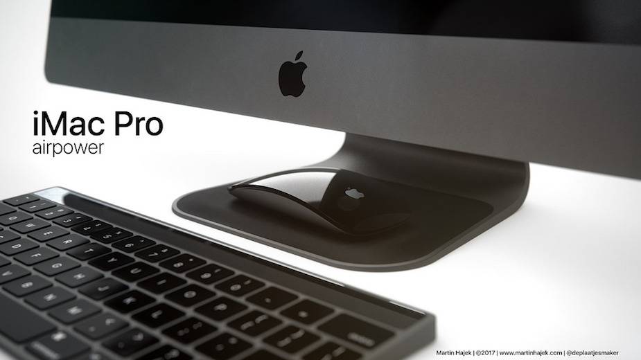 Martin Hajek jednak wpadł na jeszcze inny pomysł, w którym zespolił on ładowarkę AirPower z podstawą komputera iMac. Pomysł jest ciekawy i moim skromnym zdaniem Apple powinno pójść w tę stronę w przyszłości. Według autora grafik model Pro iMac’a charakteryzowałby się czarną powierzchnią podstawki ładującej, brązową zaś wersja tradycyjna urządzenia.