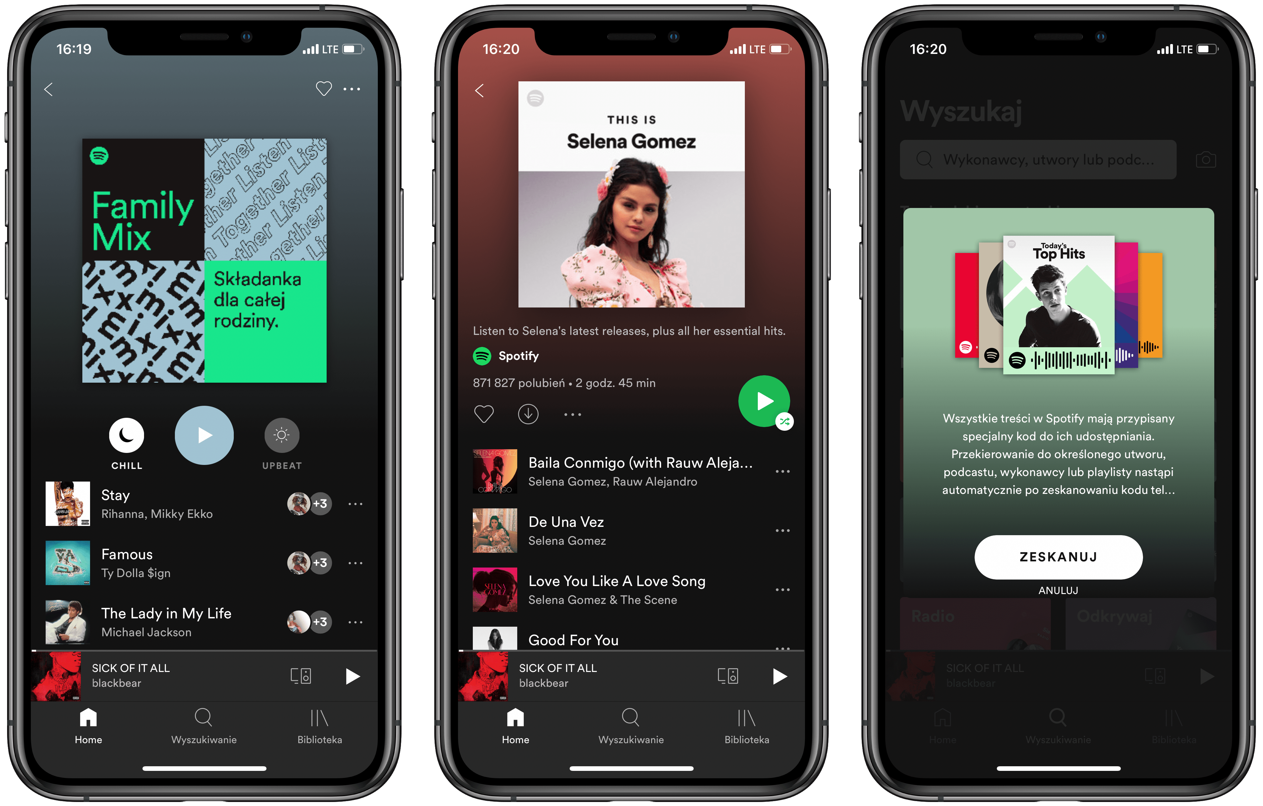 Ten punkt zarezerwowany jest, niestety, tylko dla Spotify. Aplikacja ta pozwala Wam wejść w playlistę, która zbiera dane na temat muzyki, którą odtwarzacie i tworzy rodzinny „Mix”. Możecie nawet wybrać czy piosenki mają być relaksujące, a może raczej na imprezę. To bardzo wygodna opcja, gdy razem ze znajomymi spotykacie się w jednym miejscu i chcecie posłuchać czegoś na luzie, ale nie macie przygotowanych piosenek. Kocham też to, że przy każdej piosence znajdziecie ikonki osób, dzięki którym się ona tam znalazła. Mega!