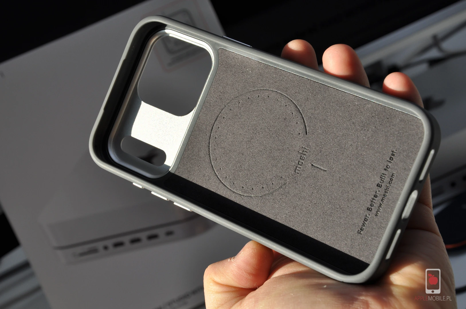 Dlatego z uznaniem kiwam głową, patrząc na wnętrze Kameleona. Moshi zastosowało tutaj miękką wyściółkę z mikrofibry. Działa ona jak delikatny bufor – nie tylko amortyzuje wstrząsy, ale przede wszystkim “tuli” obudowę telefonu, minimalizując ryzyko powstania tych mikrorys, które tak bolą przy późniejszej odsprzedaży urządzenia.