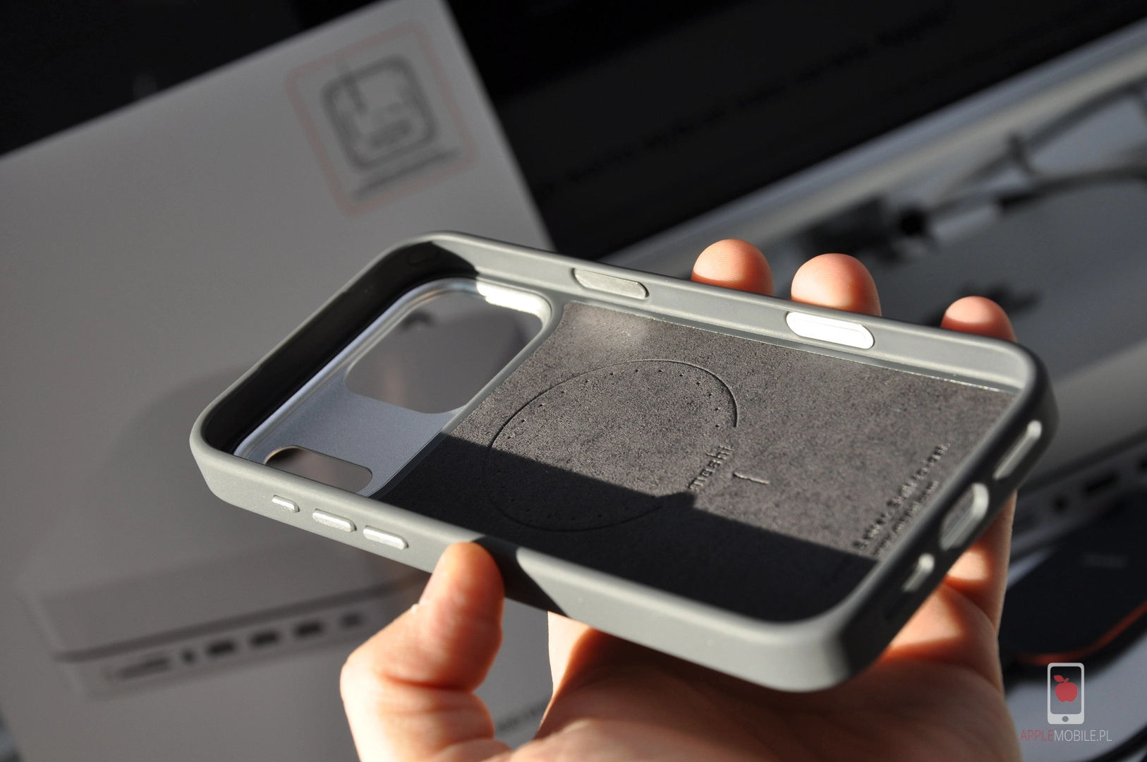 Całość spina hybrydowa konstrukcja łącząca wspomnianą wcześniej skórę wegańską z ramką z TPU (termoplastycznego poliuretanu). To mądre posunięcie inżynieryjne. TPU jest materiałem o świetnych właściwościach absorpcyjnych – w momencie uderzenia (np. upadku na narożnik) to właśnie ten materiał przyjmuje na siebie energię kinetyczną, chroniąc stalową ramkę iPhone’a przed odkształceniem. Dodatkowo producent chwali się zastosowaniem powłoki Anti-Scratch , co w przypadku akcesorium noszonego na co dzień jest kluczowe, by po miesiącu nasz telefon wciąż wyglądał reprezentacyjnie, a nie jak weteran wojenny.
