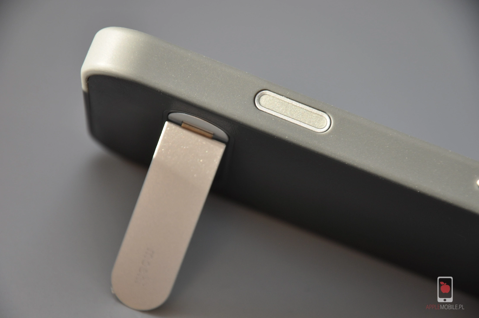 Wbudowana podpórka (kickstand) to nie jest – jak to bywa w tanich zamiennikach – wątły kawałek plastiku, który trzeszczy przy każdym ruchu. Tutaj mamy do czynienia z solidnym kawałkiem aluminium, co czuć pod palcem i widać w sposobie pracy mechanizmu.