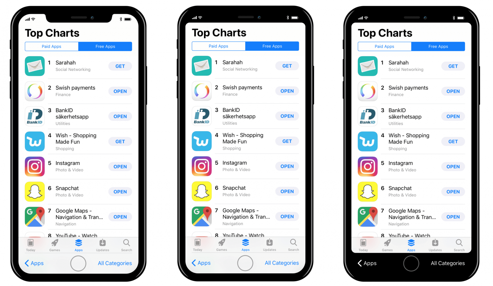 Trzy rendery wizualizują sposób w jaki Apple może maskować lub wyeksponować wycięcie za pomocą UI systemu iOS. Pierwszy wariant podkreśla niniejszy element konstrukcji, drugi maskuje go z użyciem czarnego paska w górnej części ekranu, a trzeci przypomina nieco obecne rozwiązanie, gdzie czarna przestrzeń obecna byłaby w górnej i dolnej części ekranu, a ten posiadałby proporcje 16:9.