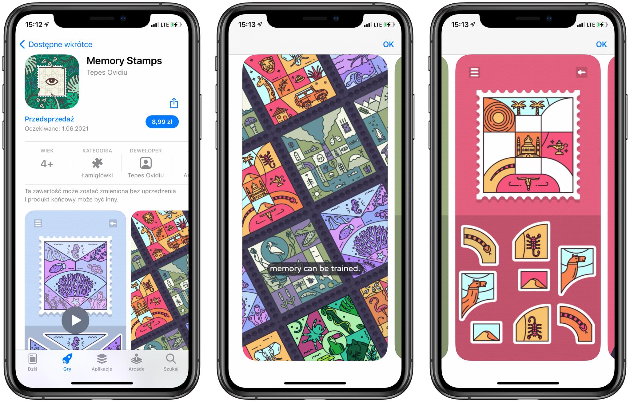 Oto jedyna płatna gra z tego zestawienia. Za 9 złotych możecie, już pierwszego czerwca, zaopatrzyć się w Memory Stamps. To apka, w której, jak sama nazwa mówi, możecie trenować swoją pamięć za pomocą ciekawych rozwiązań, jakim jest układanie puzzli, ale w bardzo niecodzienny sposób. Musicie bowiem wybierać między takimi samymi częściami, które różnią się jedynie małymi elementami. W ten sposób, tak naprawdę nieświadomie, polepszacie swoje zdolności do zapamiętywania nawet najmniejszych elementów.