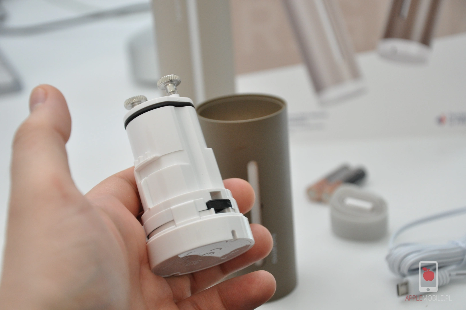 Na pierwszy rzut oka nowy model pozostaje wierny sprawdzonej formie. Zmienia się stylistyka — warianty brązowo‑beżowy i miętowy lepiej wpisują się w obecne trendy wnętrzarskie niż surowe aluminium — ale sama cylindryczna obudowa z dotykowym przyciskiem na górze, wywołującym ręczny odczyt, wciąż jest taka sama. Nie zmienia się też sposób sygnalizacji jakości powietrza (kolorowa dioda na froncie) ani przesyłania powiadomień o poziomie CO₂ czy temperaturze na telefon. W praktyce to ewolucja, a nie rewolucja — i właśnie z takiej perspektywy warto ocenić tę generację.