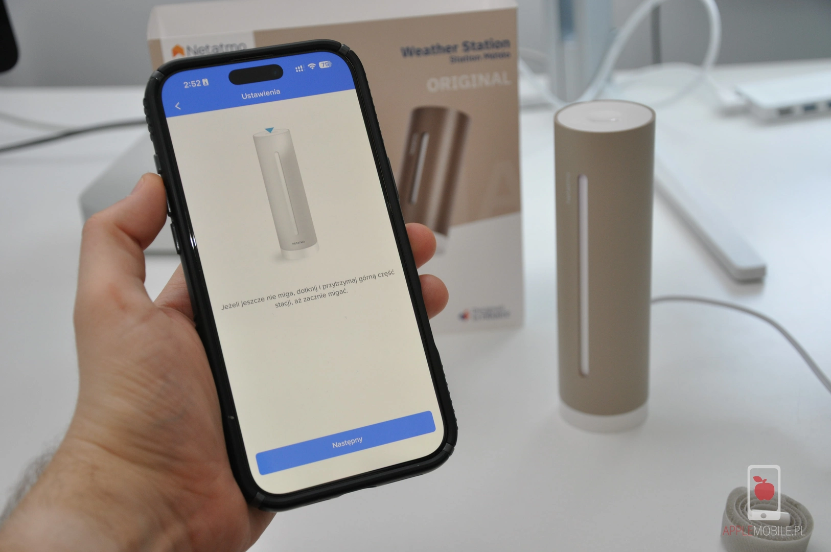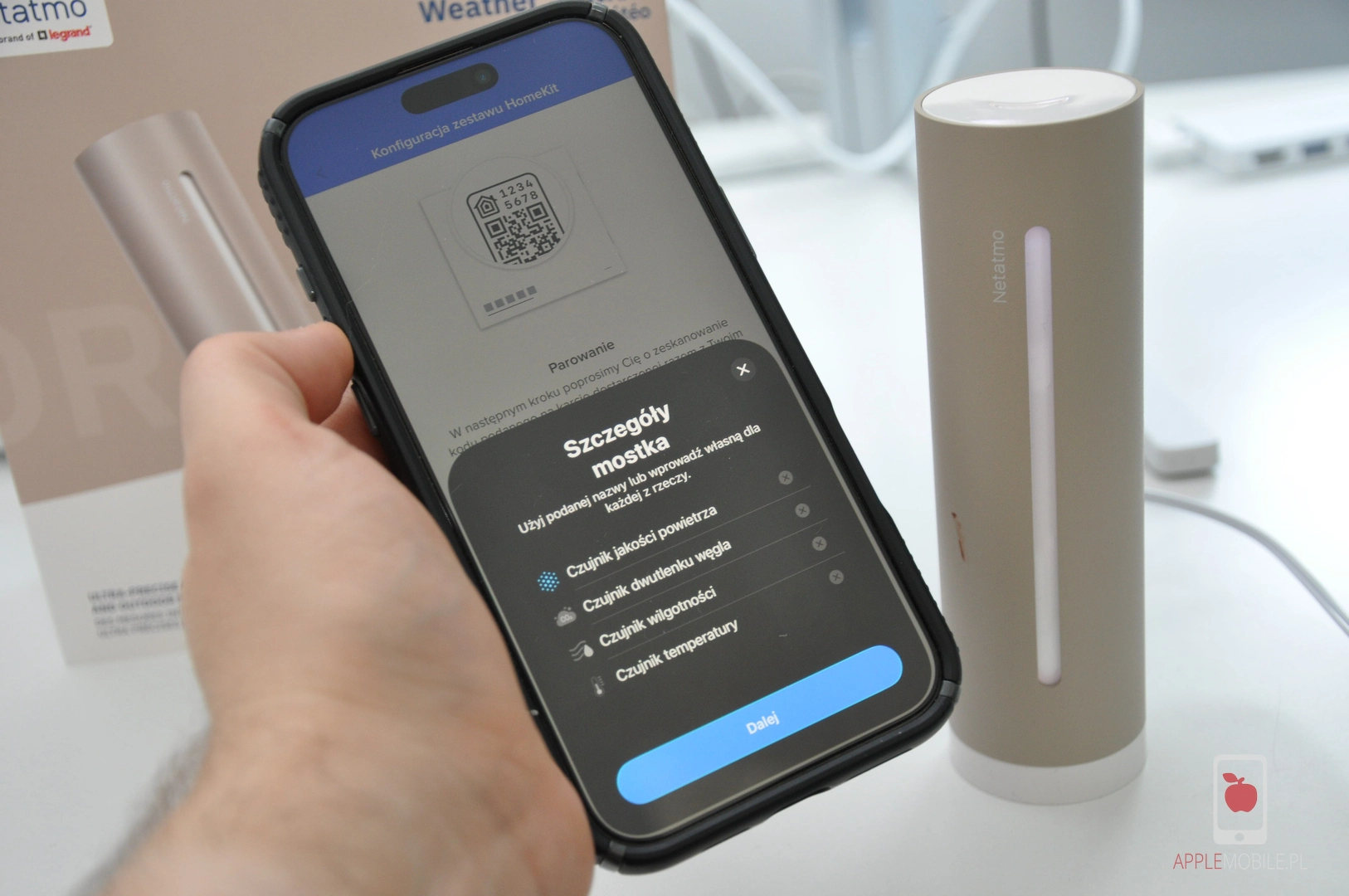 Aplikacja Netatmo od dawna dostępna jest w języku polskim, a proces dodawania stacji i modułów do naszego Apple HomeKit działa bardzo sprawnie za pomocą stworzonego przez producenta konfiguratora. Całość polega na podłączeniu do naszego Wi Fi przez wpisanie hasła, sfotografowaniu kodu HomeKit na obudowie stacji i wybraniu pomieszczeniach, w którym stacja będzie się znajdować.