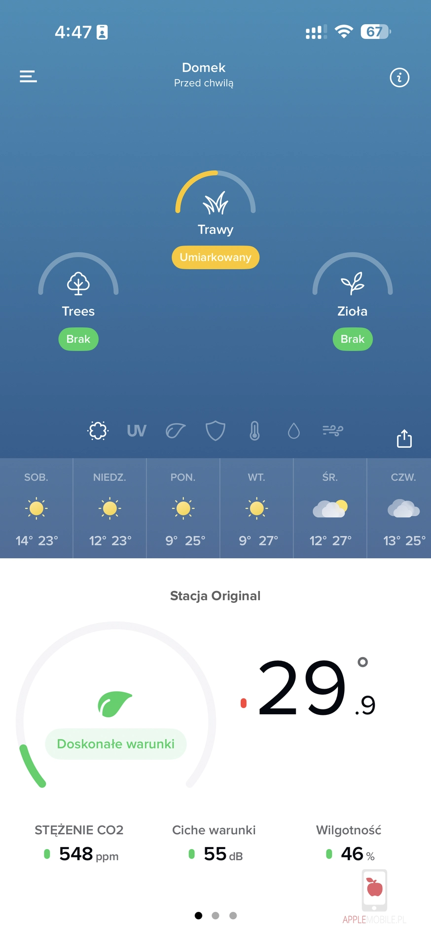 Dla alergików dodano monitorowanie pylenia chwastów, drzew i traw z prognozami na kolejne dni. Alergie to straszne, sami wiecie co. To ważna funkcja, ale również można by się bez niej obyć, bo jest tryliard aplikacji, które alergicy z powodzeniam od dawna używają i mają takie powiadomienia na swoich telefonach, bez konieczności kupowania dodatkowego urządzenia.