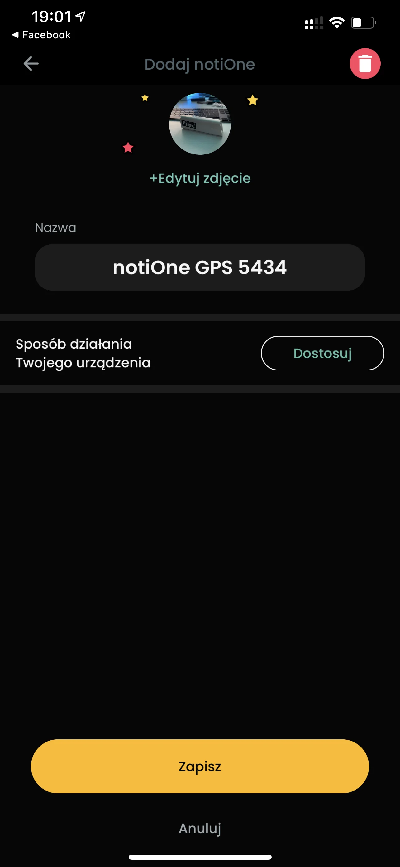 Parowanie nowego lokalizatora notiOne GPS jest dziecinnie proste jak w przypadku każdego innego lokalizatora tego producenta. Wystarczy wybrać dodaj notiOne, wskazać model GPS, który chcemy dopisać, nacisnąć przycisk na obudowie, a następnie wprowadzić kod urządzenia znajdujący się na obudowie. Po chwil urządzenie będzie można sfotografować na przykład na rowerze, aby później łatwiej je rozpoznawać na liście lokalizatorów.