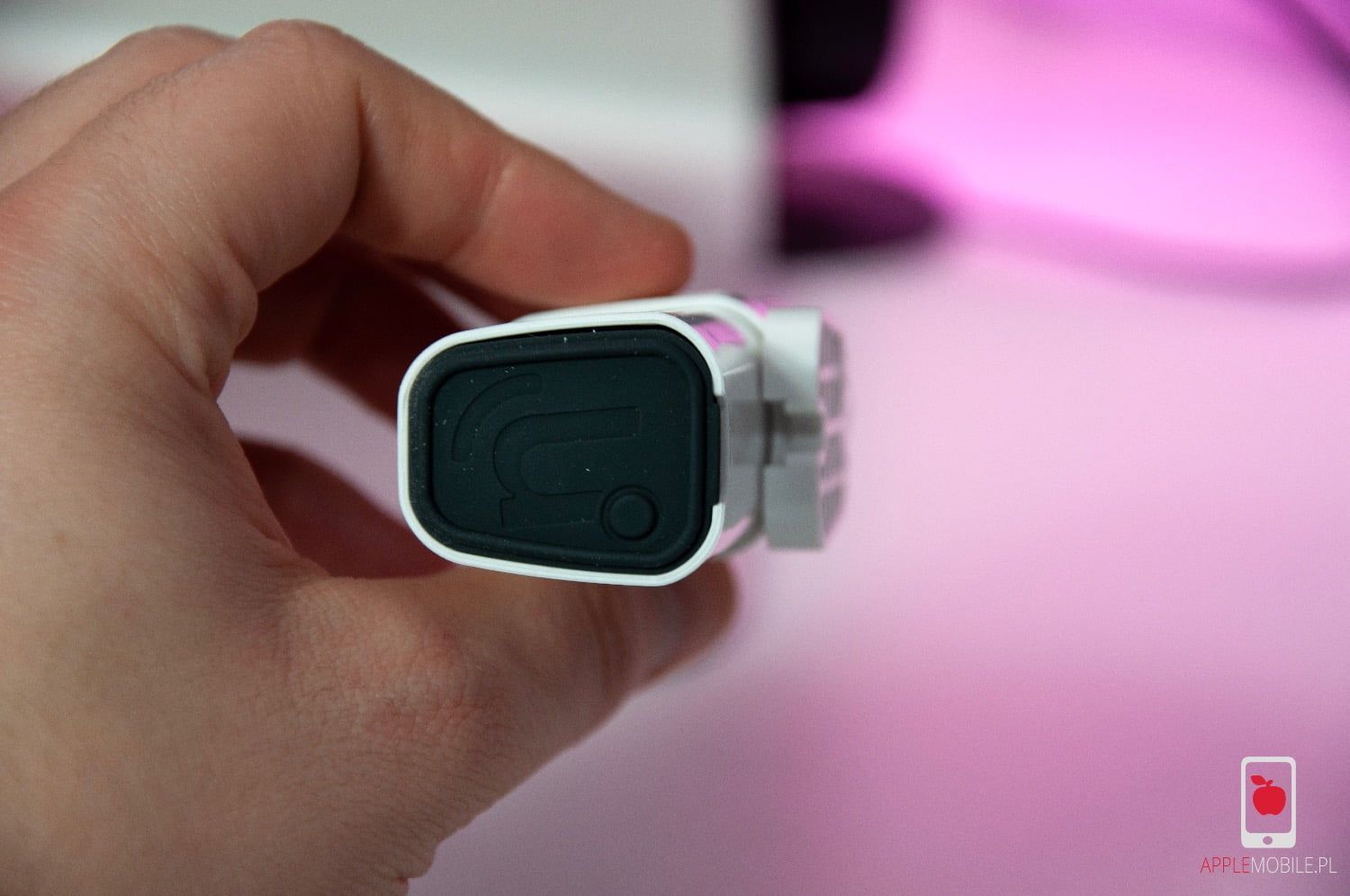 Zatyczka jest także przedłużeniem jedynego przycisku znajdującego się w tym sprzęcie, który pozwala uruchomić lokalizator chociażby w chwili, gdy całkowicie ulegnie wyładowaniu i będziemy chcieli przywrócić jego pracę po naładowaniu.