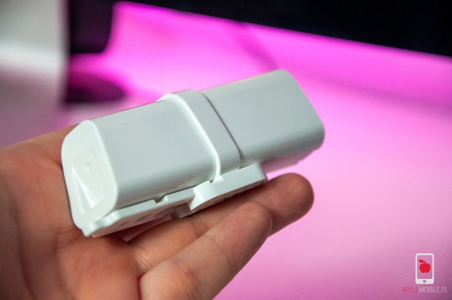 Lokalizator jest niewielkich rozmiarów. To coś na zasadzie małego powerbanka. Taki batonik w mocnej plastikowej obudowie, która jak twierdzi producent, jest również wodoodporna. Pod warunkiem, że nie zapomnimy założyć gumowej zatyczki. Skoro już jesteśmy przy zatyczce, to w moim odczuciu jest ona największą piętą achillesową urządzenia, ponieważ jest elementem wolnym, w żaden sensowny sposób niespiętym z obudową, co w przypadku chociażby montażu do ramy roweru, może spowodować jej zagubienie.