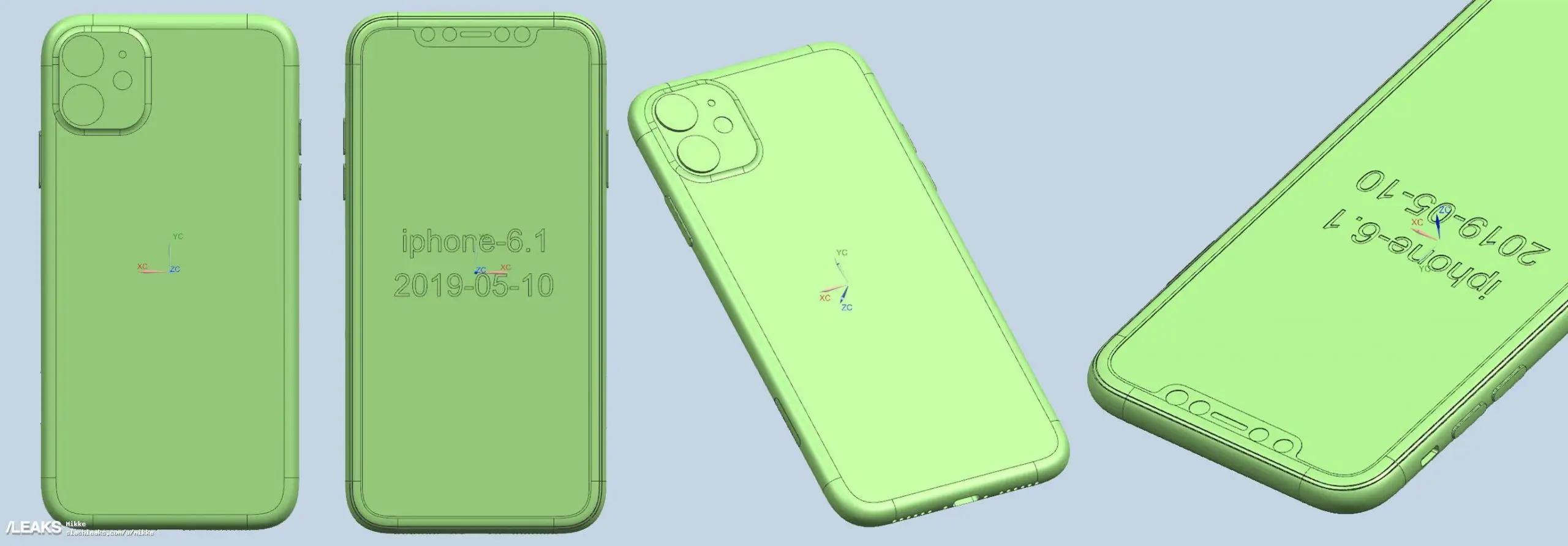Serwis Slashleaks opublikował grafiki CAD przedstawiające następców iPhone’a XS, XS Max oraz XR. Następcy iPhone’a XS i XS Max mają otrzymać trzy obiektywy w tylnym aparacie. Następca iPhone XR otrzyma tylko dwa obiektywy. Wszystkie trzy modele otrzymają zaokrąglony panel z obiektywami kamer w kształcie kwadratu oraz złącze Lightning. Nie ma żadnych innych dowodów na to, że tak będą wyglądały nowe iPhone’y. W przeszłości takie wycieki często okazywały się jednak prawdziwe. Nie ma informacji na temat parametrów trzech obiektów aparatu. Ming-Chi Kuo twierdzi, że będzie to aparat z 12 megapikselową matrycą i obiektywem super szerokokątnym.