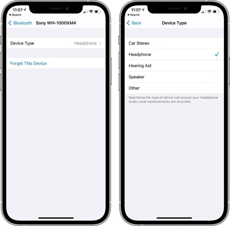 [Aktualnie systemy iOS i iPadOS wszystkie urządzenia audio podłączone przez Bluetooth do iPhone’a lub iPada traktują tak samo. Dla niektórych użytkowników jest to pewien problem, gdyż system obniża poziom głośności muzyki odtwarzanej na głośniku. Okazało się jednak, że w systemie iOS i iPadOS w wersji 14.4 ma się to zmienić. W drugiej becie tej wersji systemu pojawiła się opcja dodania kategorii akcesorium do konkretnego urządzenia audio podłączonego przez Bluetooth. Do wyboru są takie jak: system audio w samochodzie, aparat słuchowy, głośnik, słuchawki oraz inne. Dzięki takim kategorią system będzie mógł w lepszy sposób dobierać poziom głośności i powiadamiać ostrzeżeniem dotyczącym hałasu.