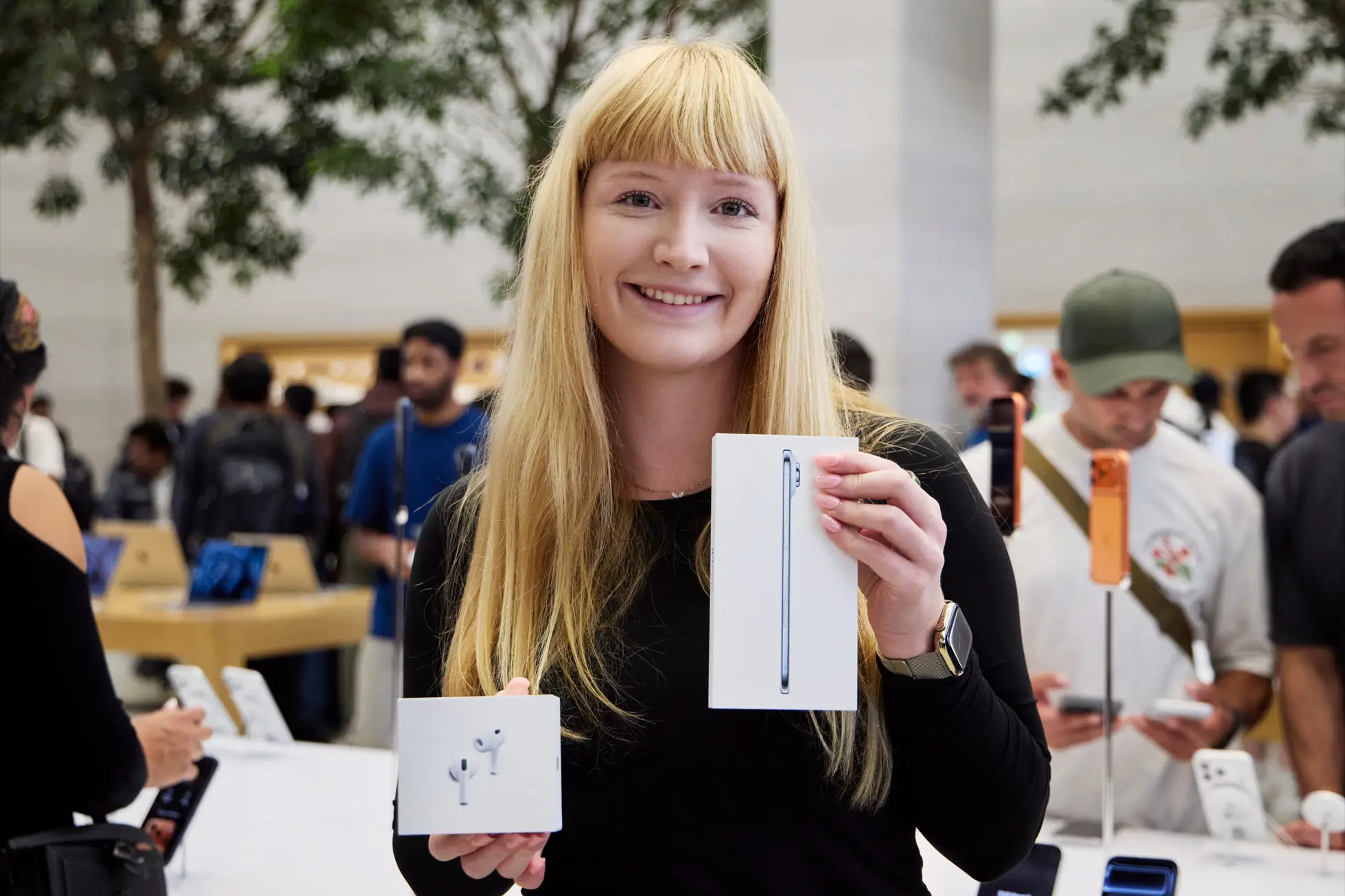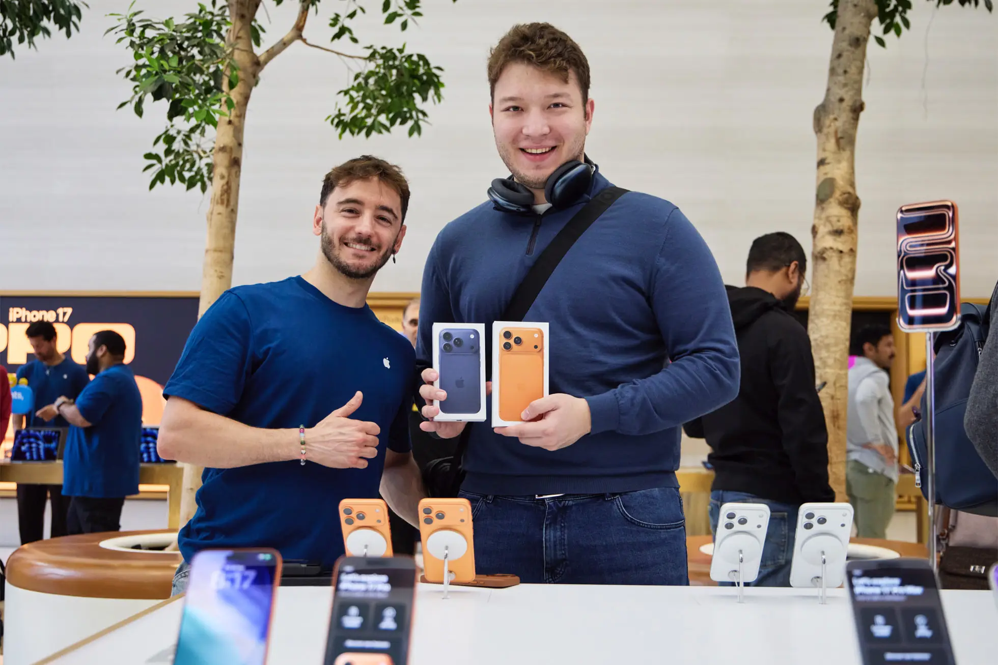 W tym nowy iPhone 17, Air, 17 Pro i 17 Pro Max dostępne w Apple Store na całym świecie. A także zegarki Apple Watch Series 11, Ultra 3, SE 3 i słuchawki AirPods Pro 3. Podekscytowani klienci świętowali premierę innowacyjnych produktów Apple. Powitali ich członkowie zespołu Apple, którzy z przyjemnością zapewniali spersonalizowane wsparcie przy zakupach.