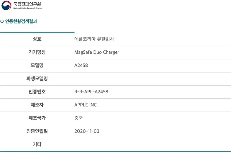 Podczas ostatniej konferencji firma Apple zapowiedziała nową ładowarkę MagSafe Duo Charger, która ma umożliwić jednoczesne ładowanie iPhone’a i zegarka Apple Watch. Według najnowszych doniesień to akcesorium może wkrótce być dostępne w sprzedaży. Koreański instytut badawczy NRRA zaakceptował to akcesorium od Apple, dzięki czemu firma może sprzedawać je na tamtym rynku. Może to oznaczać, że oficjalna sprzedaż MagSafe Duo Charger rozpocznie się już niedługo. Możliwe, że w ciągu kilku najbliższych dni ładowarka zostanie także zaakceptowana przez FCC w USA. O tej podwójnej ładowarce od Apple jak na razie zbyt wiele nie wiadomo. Firma Apple nie pokazała żadnej specyfikacji technicznej i nie przedstawiła ceny. Jedyne co wiadomo to, że będzie mogła ładować jednocześnie dwa iUrządzenia oraz ma być składana. Bardzo możliwe, że będzie posiadała port USB-C.