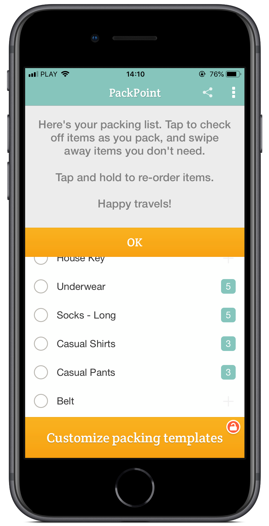 Aplikacja musi dowiedzieć się kilku informacji o Was i o Waszej podróży. Po pierwsze – ważna jest Wasza płeć. Po drugie – na ile i gdzie jedziecie? Dalsze sprawy to: w ile osób, jakie jest Wasze hobby, co jest dla Was priorytetem, czym się zajmujecie pod względem zawodowym (i tak dalej). Apka dobierze najważniejsze rzeczy, które powinniście zapakować. Uwierzcie mi lub nie, ale są one naprawdę trafne! Uwielbiam program PackPoint Travel i uważam, że powinniście dać mu szansę szczególnie wtedy, gdy język angielski i podstawowe słownictwo podróżnicze nie jest Wam obce. Polecam!