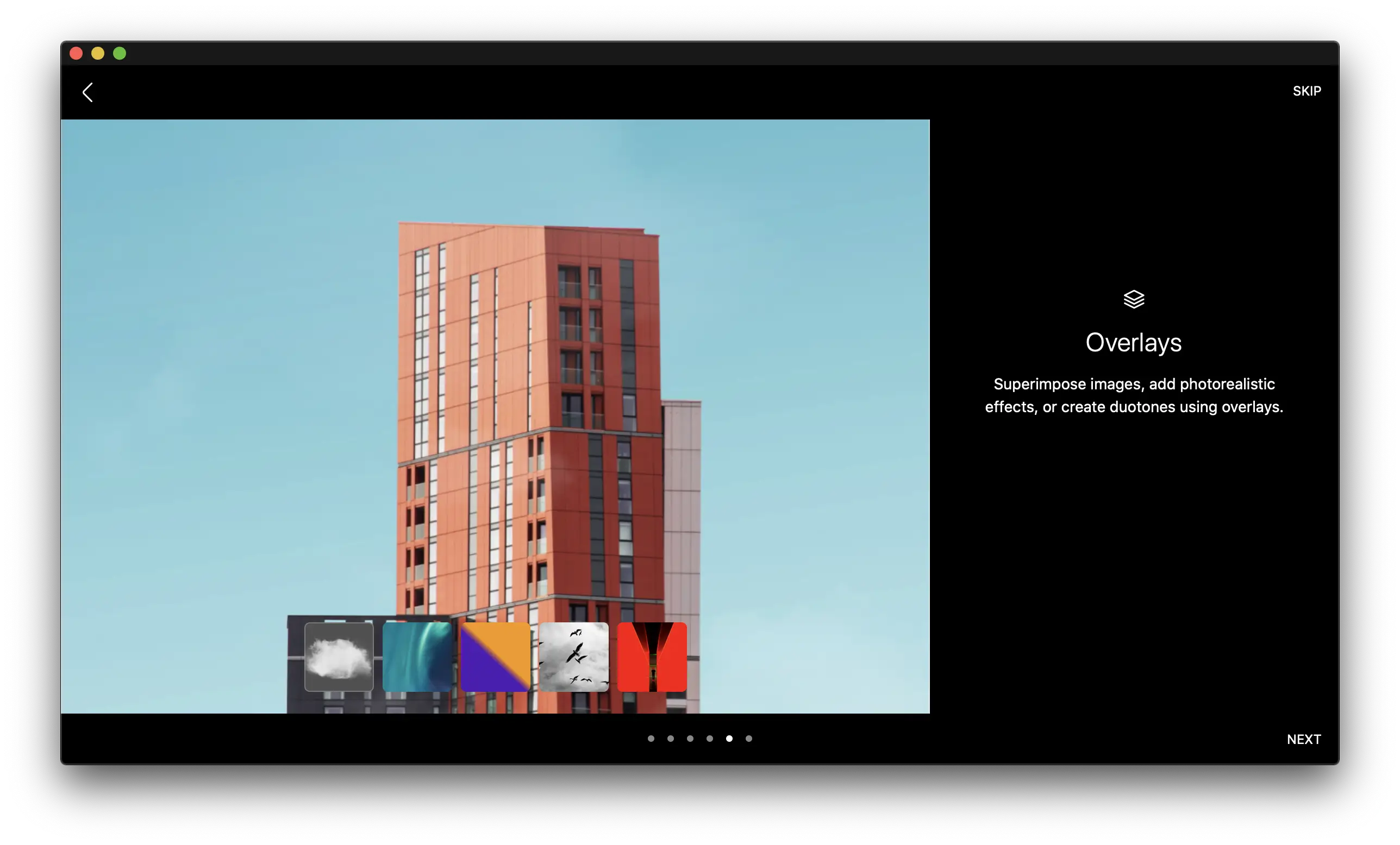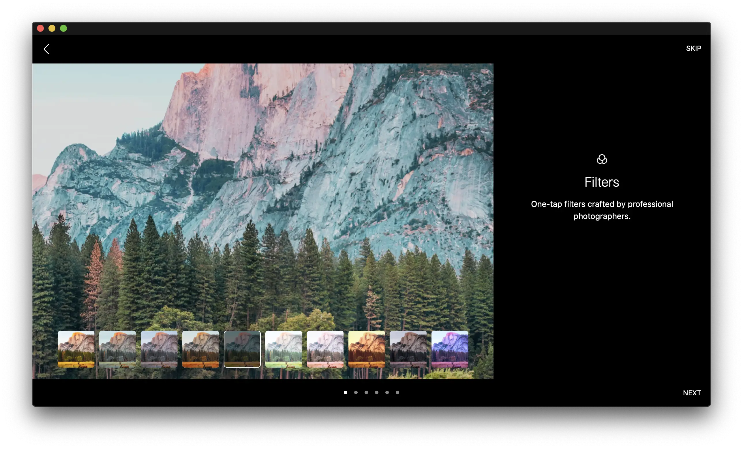 Z ekranów powitalnych dowiedzieć się możemy o filtrach, możliwości zabawy światłem, narzędziach umożliwiających nam pracę z twarzą – czyli retuszowanie, efektach które możemy nakładać na zdjęcia, o tym że aplikacja pozwala na pracę na warstwach oraz o masce. Jest to naprawdę ogrom narzędzi, które umożliwiają nam zrobienie bardzo wielu rzeczy z naszymi fotkami.