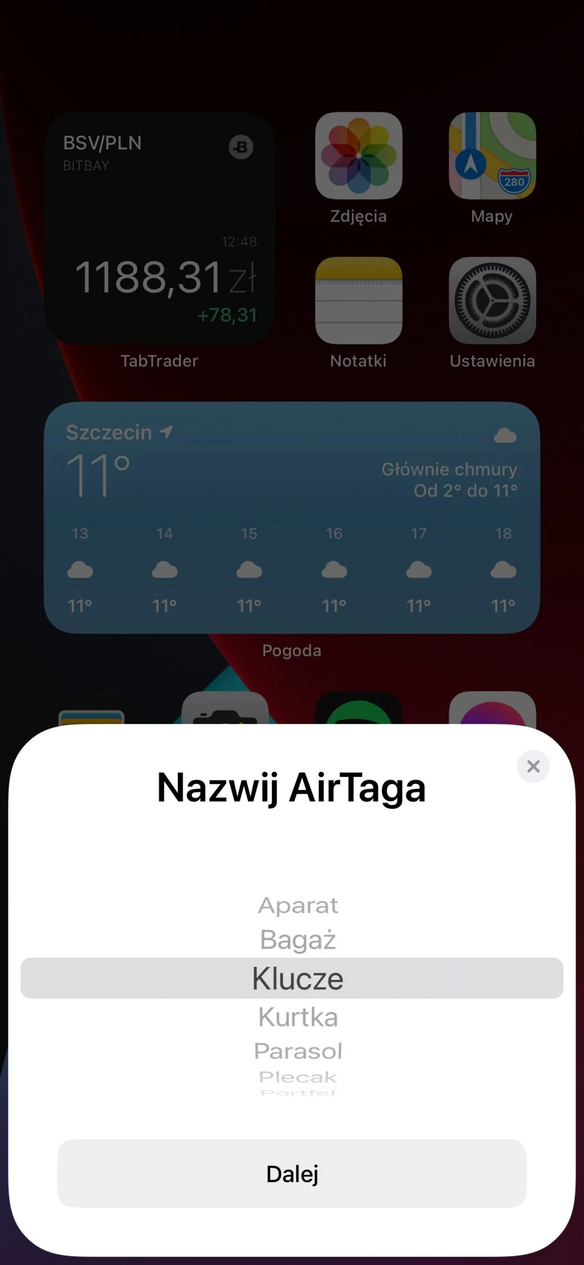 Pierwsze uruchomienie AirTag