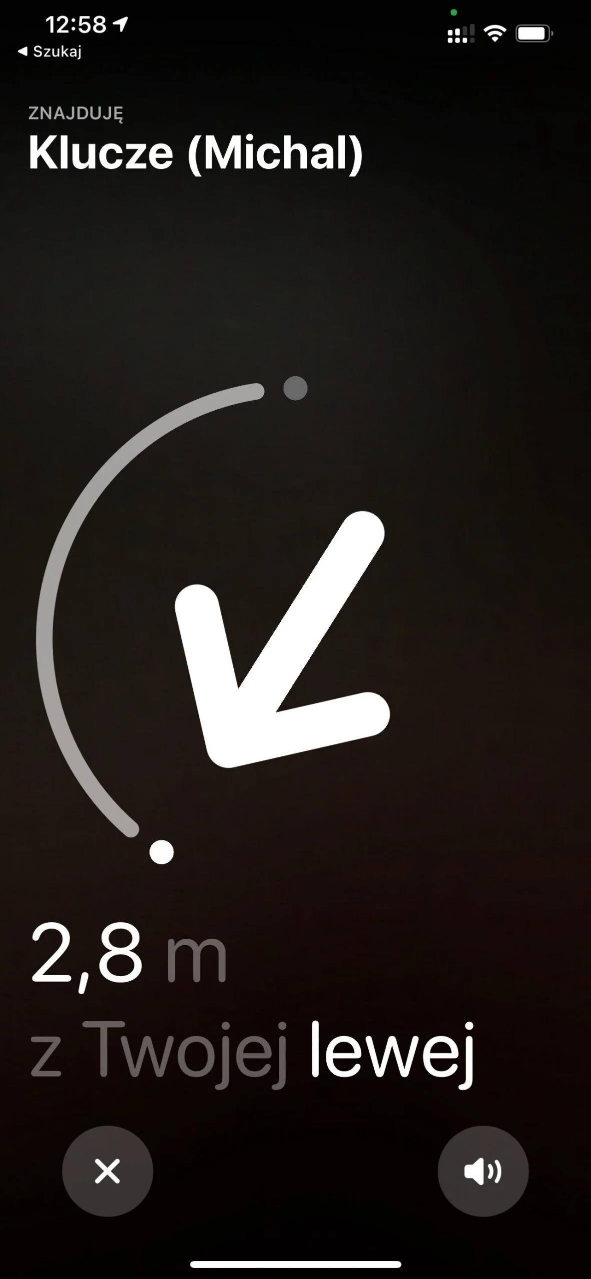 W przypadku AirTag, choć buzzer emitujący dźwięk nie jest najwyższych lotów i gra dość cicho, to już kierunkowe wskazywanie gdzie znajduje się zguba, dzięki układowi U1 Wideband robi świetną robotę. Jeżeli stoimy tyłem, pokazuje, że stoimy tyłem.