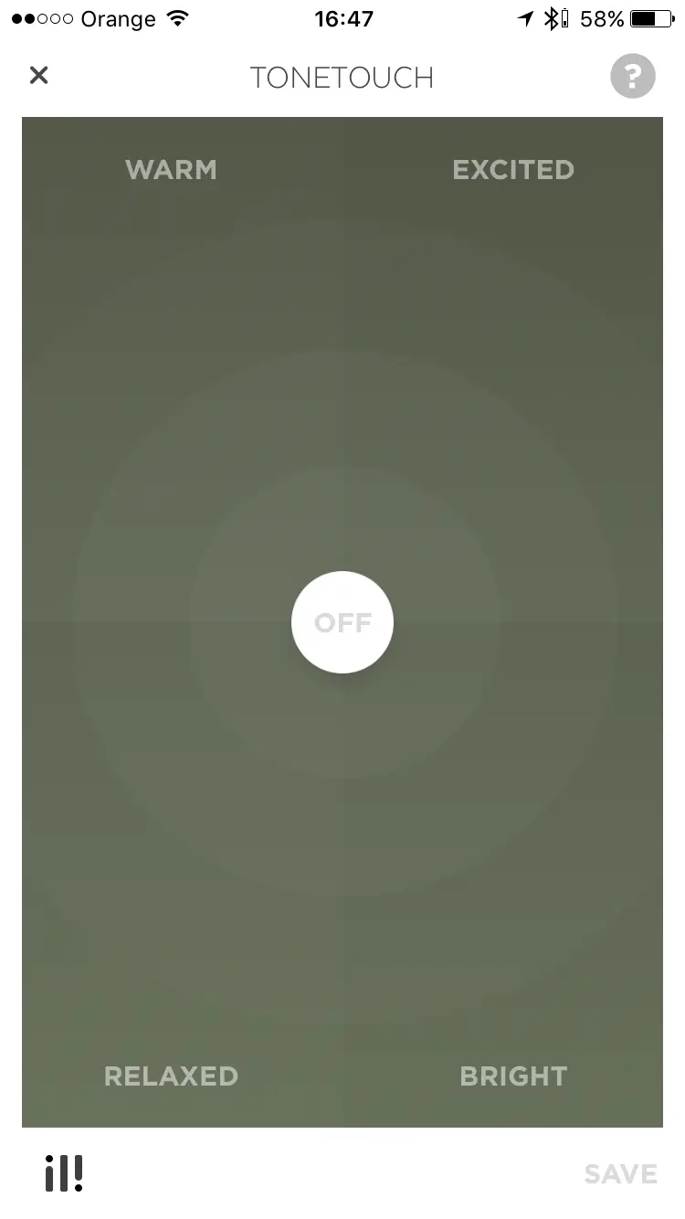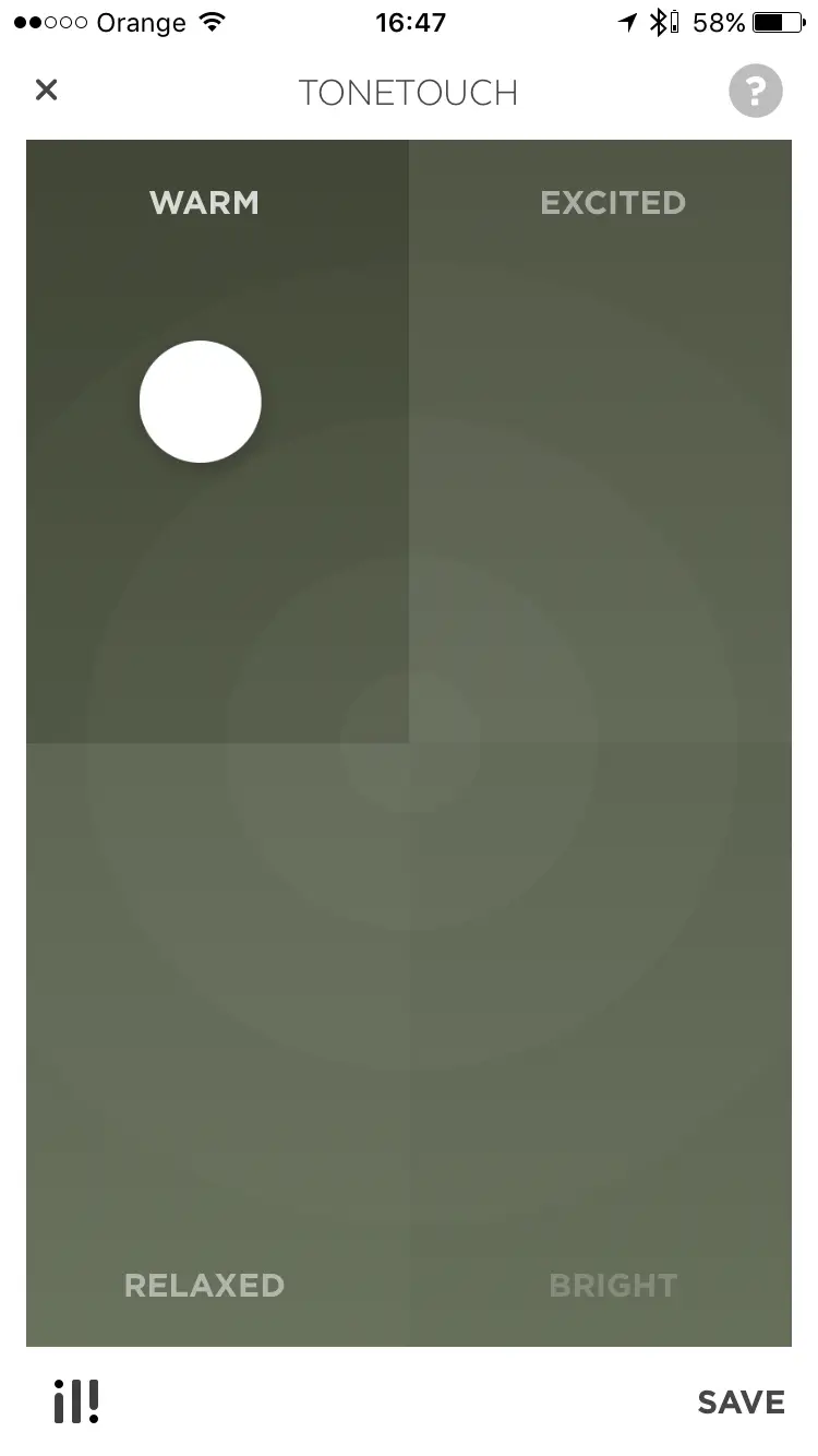 Ręcznie możemy jednak sterować kropką na ekranie, która umieszczamy bliżej tego rodzaju dźwięku, który najbardziej nam odpowiada – WARM, RELAXED, EXCITED oraz BRIGHT. Do dyspozycji jest także aplikacja dla Apple Watch.