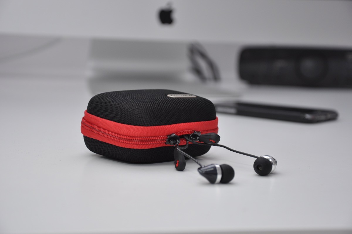 Tu mamy paradoks, który widzimy od samego początku, kiedy otworzymy opakowanie. Słuchawki M1, choć to najprostsza i najtańsza wersja dokanałówek z rodziny M, jest sprzedawana w bardzo przyzwoitym zestawie. W przezroczystej wydmuszce znajdziemy ciekawie zapakowany zestaw w dobrej jakości etui zapinanym na zamek błyskawiczny. Z etui wystają tylko końcówki z przetwornikami. Reszta przewodu jest schowana wewnątrz. Prezentacja bomba.