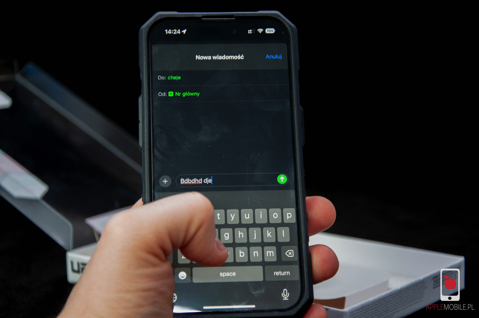 Jednak niewytłuszczona tak bardzo w specyfikacji, ale bardzo ważna zaleta tego etui, to komfort i pewność chwytu. To jedno z tych nielicznych etui, które mimo dużych rozmiarów iPhone’a 15 Pro, jesteś w stanie pisać na jego klawiaturze jedną ręką i to bez trudu i dyskomfortu.