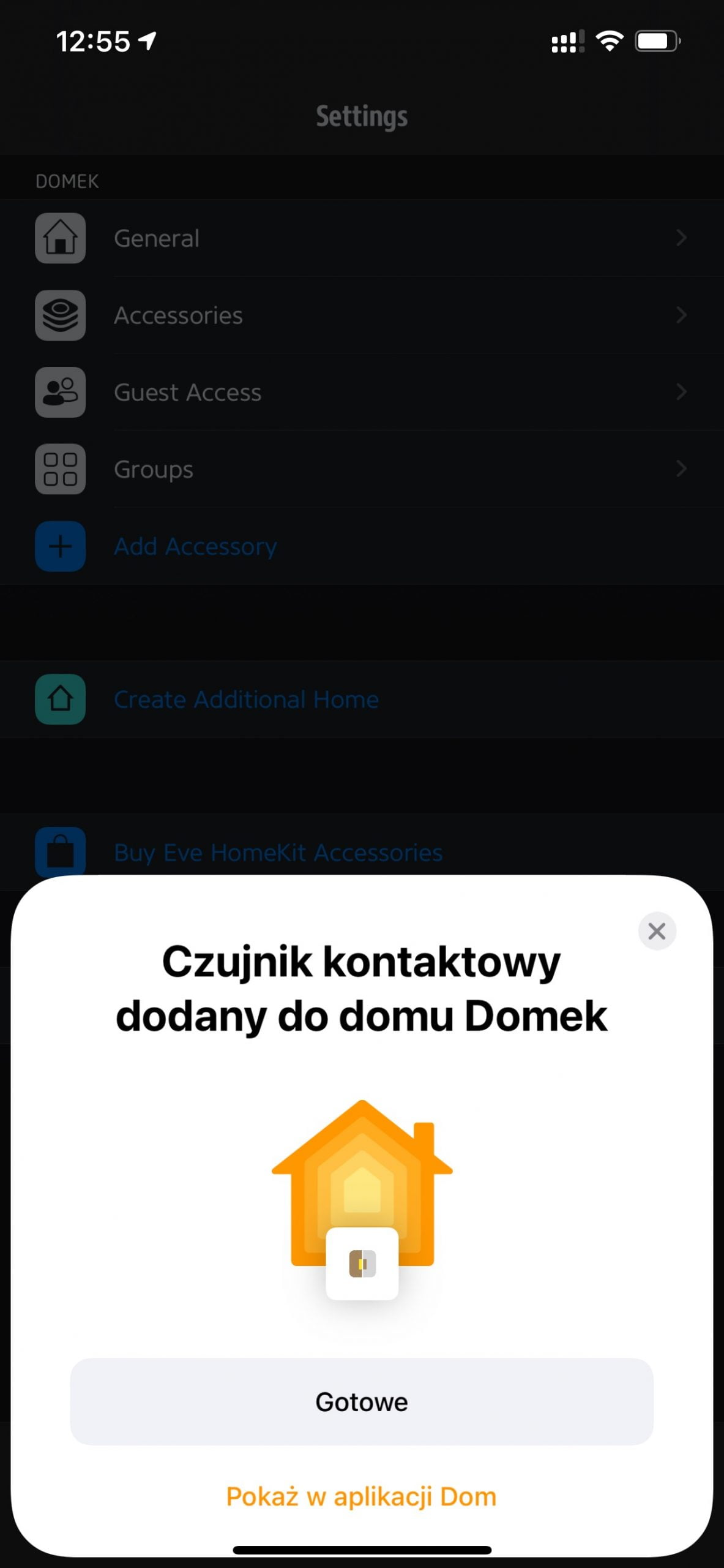 W tym momencie wyświetla się już kreator HomeKit z iOS, który jest w języku polskim, wystarczy sfotografować kod QR z ulotki znajdującej się w zestawie i to w zasadzie tyle.