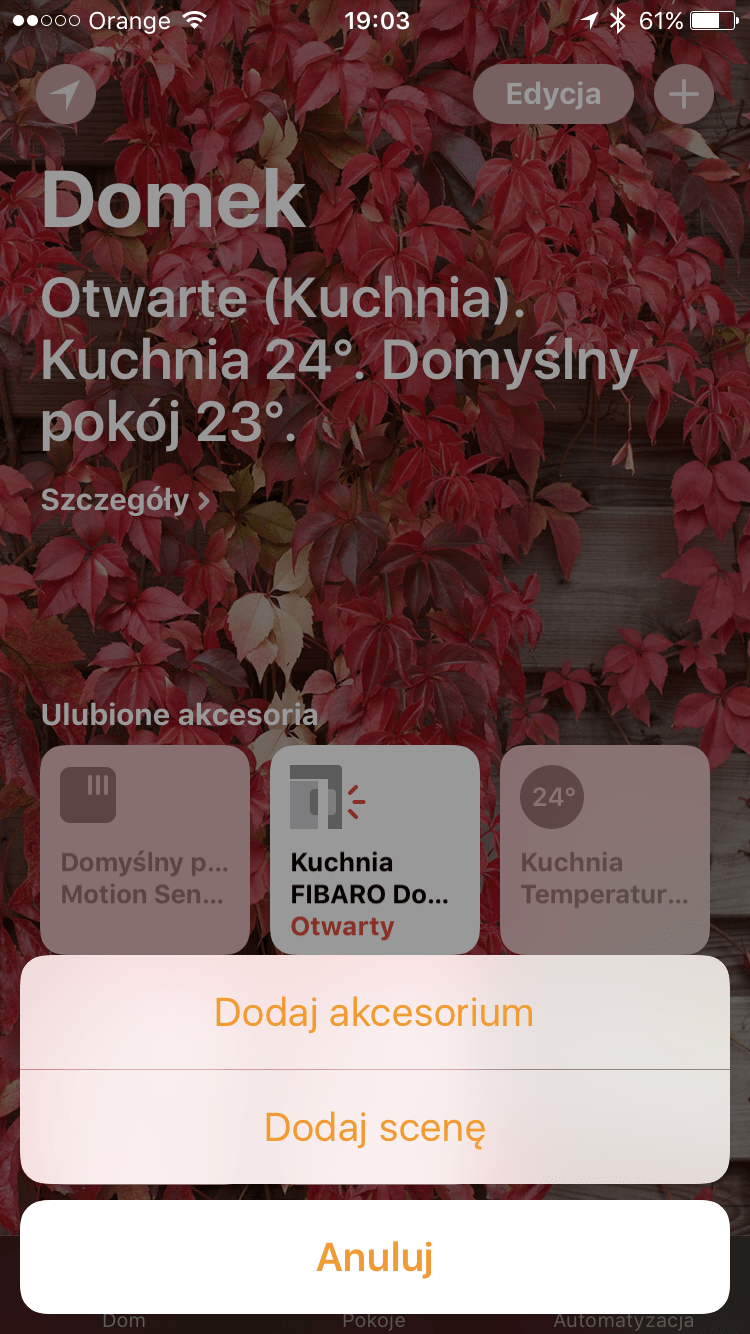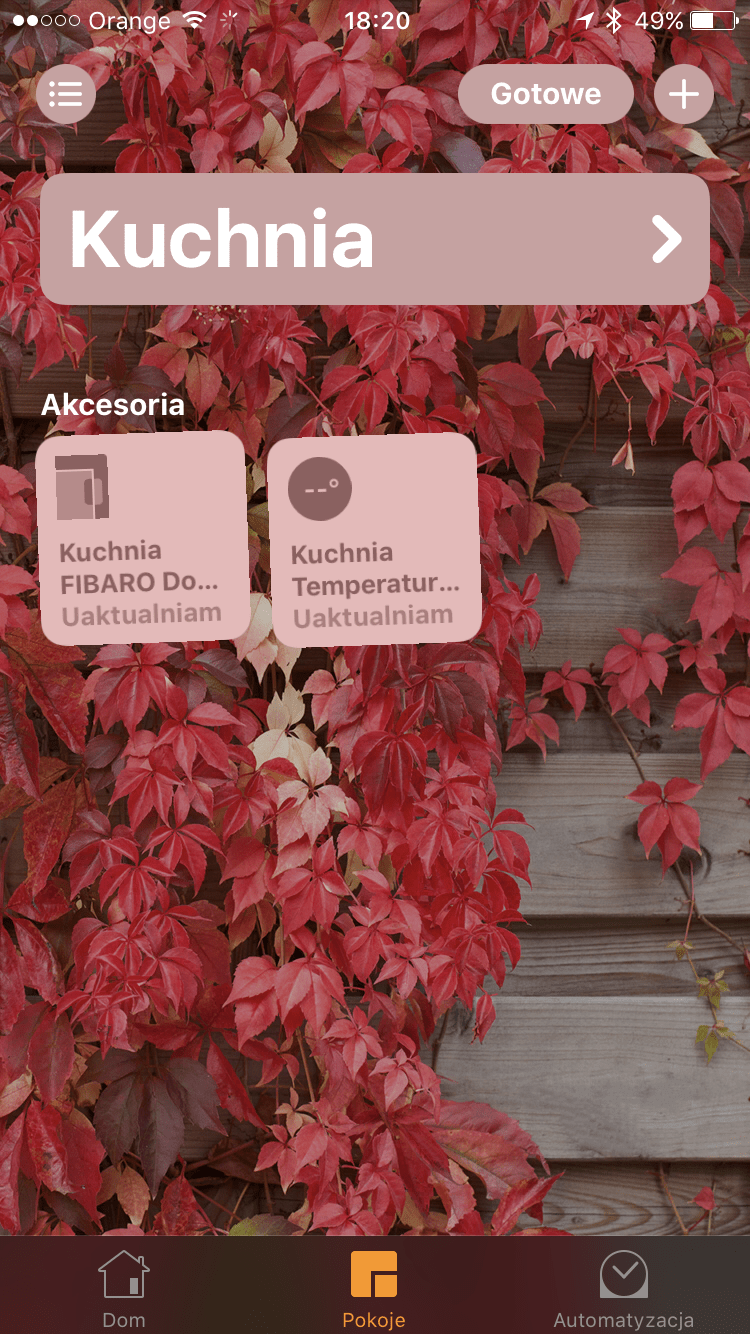 Niestety testowane urządzenia FIBARO są jedynymi kompatybilnymi z HomeKit jakie posiadam, a w związku z tym, że są to wyłącznie sensory, nie możemy z nich zbudować żadnej sceny, gdyż do jej utworzenia potrzebne jest urządzenie, które można np. za pomocą takiego czujnika włączyć.