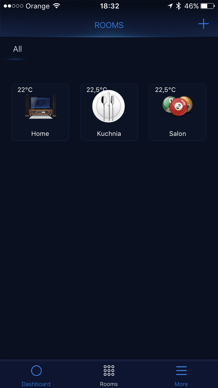 Posiadane urządzenia mogą być grupowane w utworzonych przez nas pomieszczeniach. Każde pomieszczenie dla łatwiejszej nawigacji może zostać opatrzone nie tylko przypisaną mu nazwą ale również ikoną.