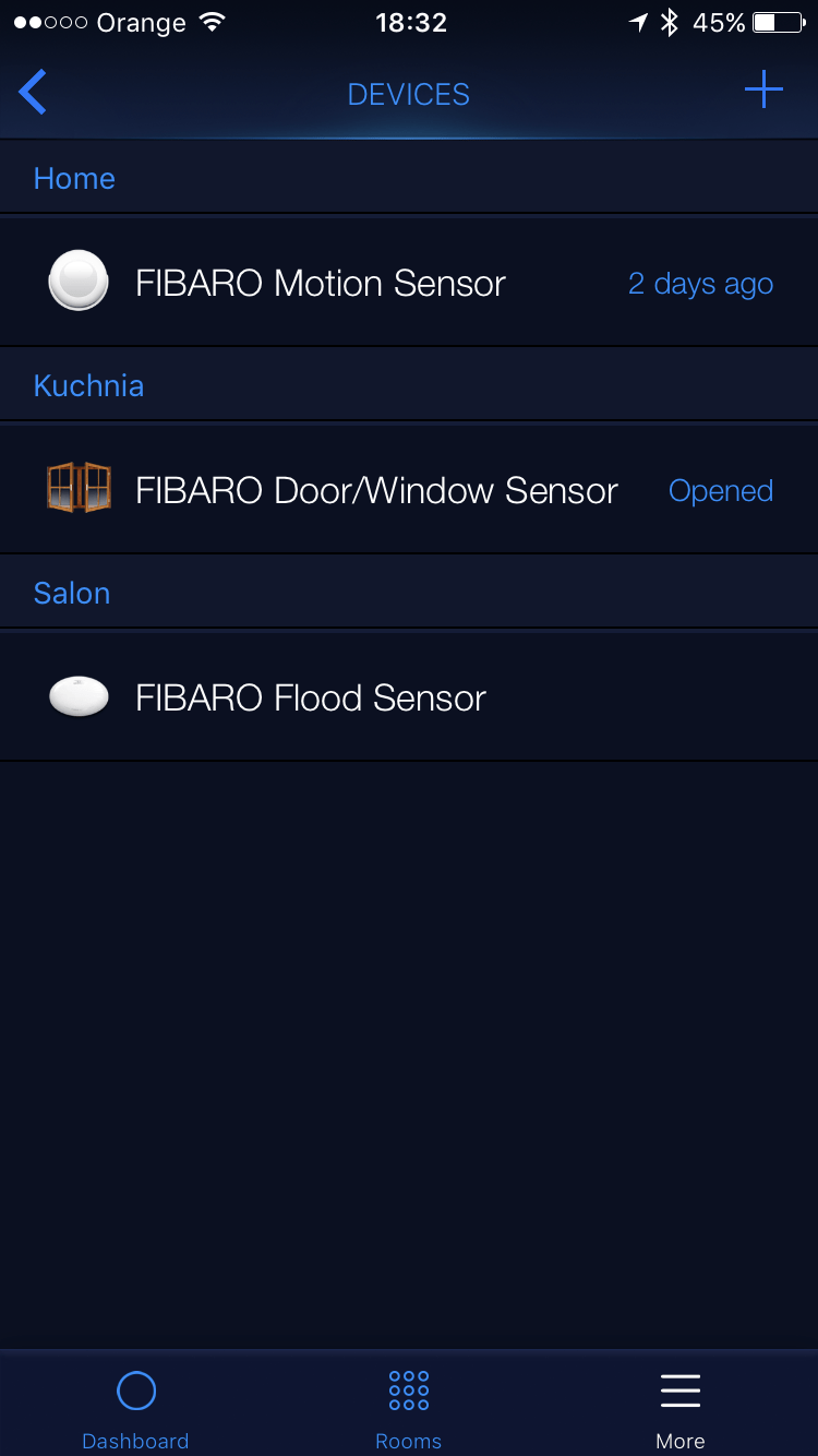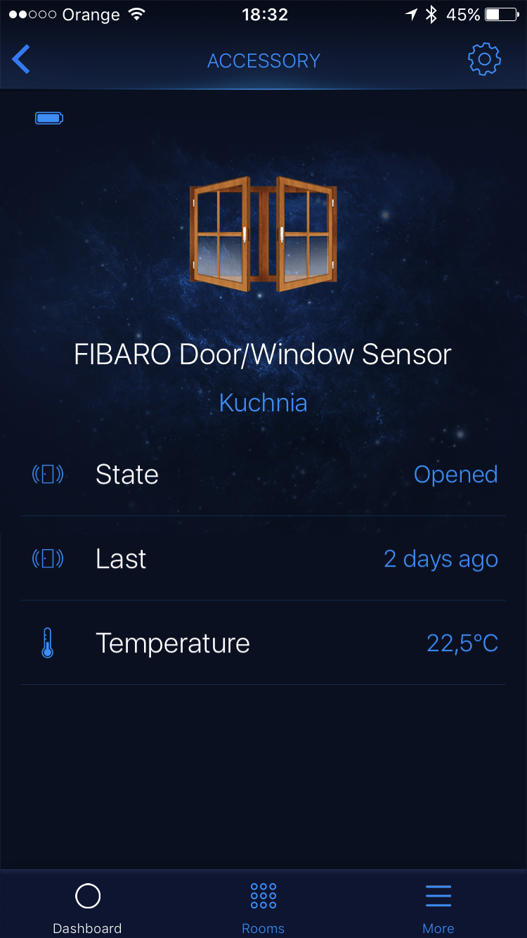 Urządzeniami FIBARO dla HomeKit możemy sterować także dedykowaną aplikacją FIBARO. Nie jest to aplikacja, którą znają użytkownicy systemu pod Z-Wave, a zupełnie nowa z całkowicie odmienionym, świeżym interfejsem, utrzymanym w chłodnej, kosmicznej stylistyce. Aplikacja wydaje się być o wiele bardziej intuicyjna od oferowanej przez Apple, choć to bardzo subiektywne odczucie, które może wynikać z mojego przyzwyczajenia do programu FIBARO z systemu Z-Wave.