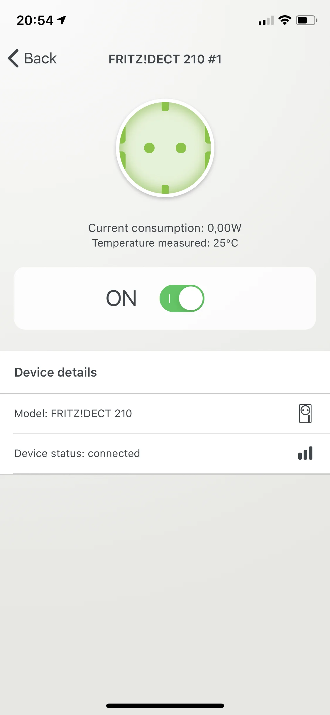 W aplikacji możemy nie tylko zarządzać naszymi urządzeniami SmartHome od Fritz!, ale również sprawdzić temperaturę czy aktualne zużycie energii pobieranej przez podłączone urządzenie.