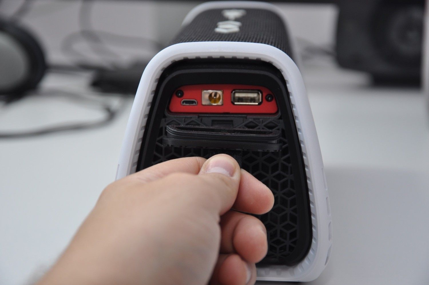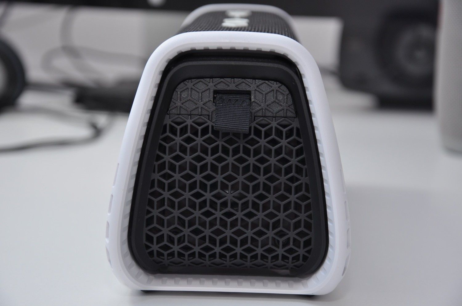 Obudowa w wersji SPORT wykonana została z tworzywa sztucznego. Przyznam szczerze, że ta w wersji STYLE, wykonana z tkaniny znacznie bardziej mi się podoba. Ta jednak będzie bardziej praktyczna w plenerze. Jeżeli nam się czymś zabrudzi czy zachlapie, wystarczy ją tylko umyć i będzie jak nowa. Dzięki tworzywu obudowa pozwala także unosić się głośnikowi na powierzchni wody – podobno, choć sam tego nie sprawdziłem.